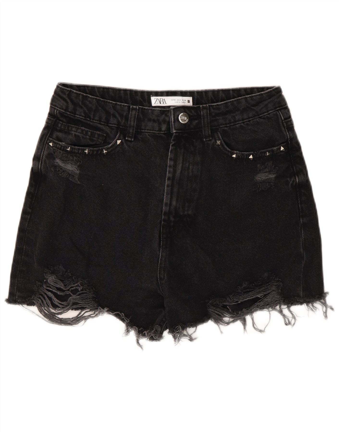 ZARA Womens Distressed Denim Shorts EU 38 Small W28 Black