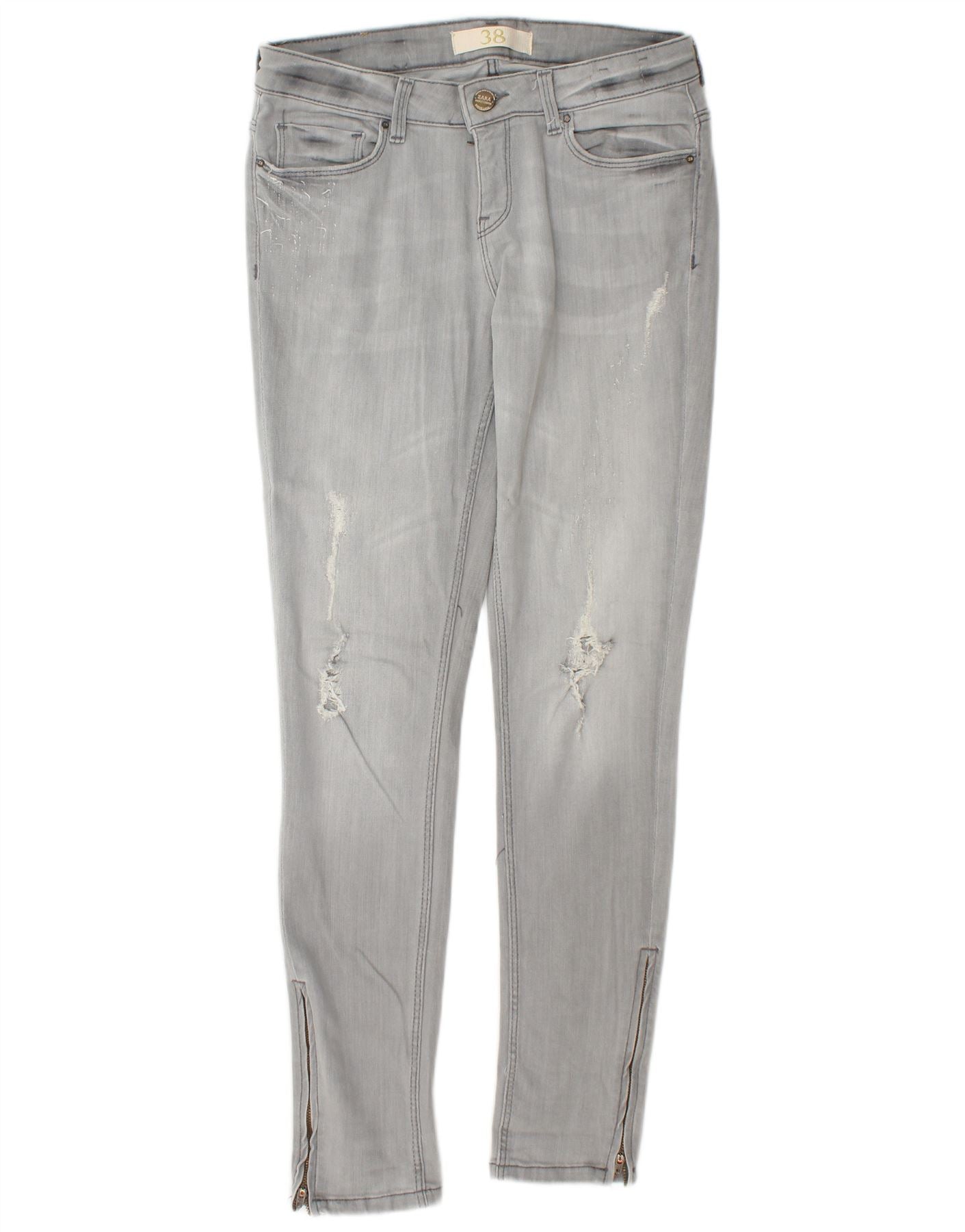 ZARA Dame Distressed Skinny Jeans EU 38 Small W28 L30 Grå Bomuld