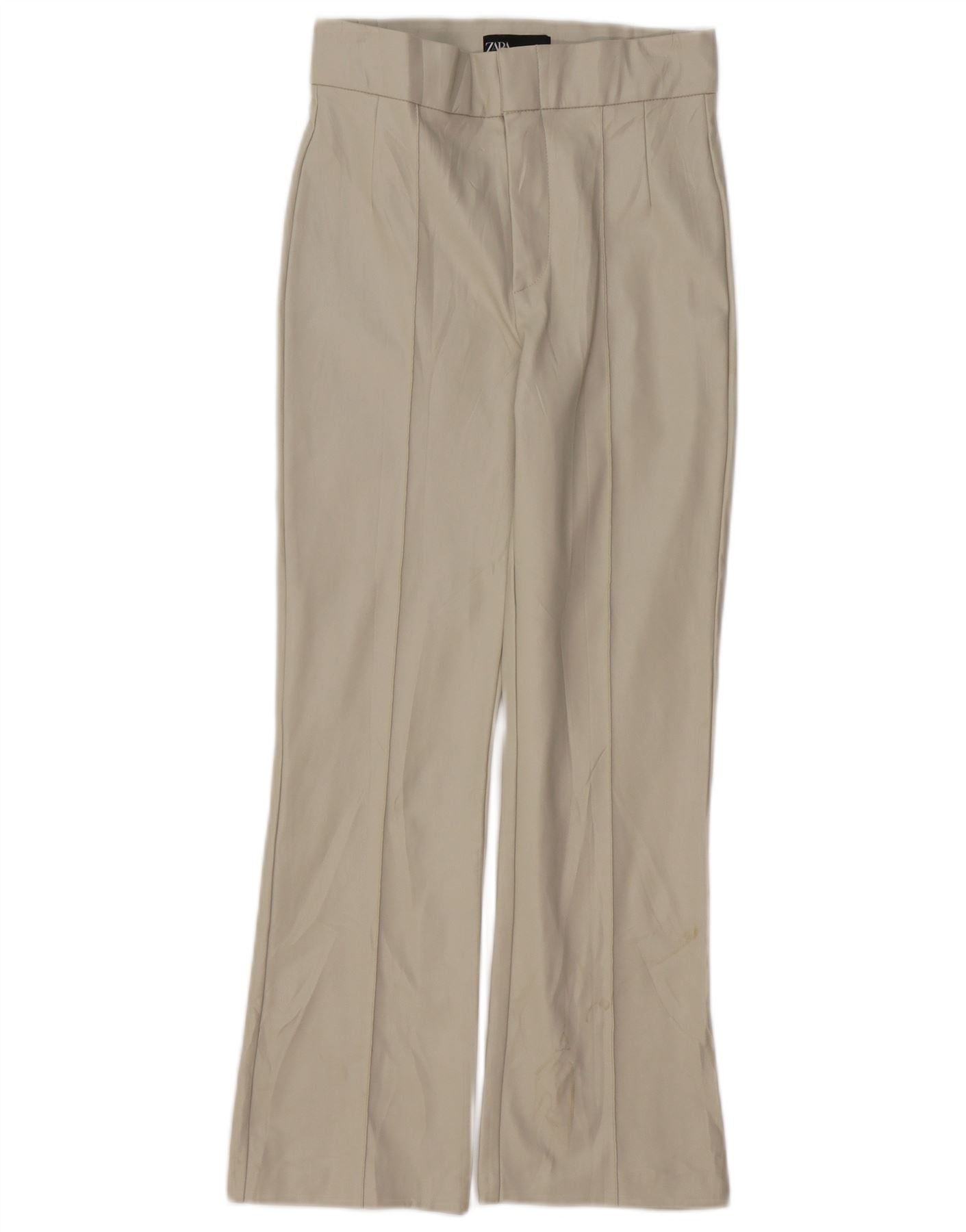 ZARA Dame imiteret læder Bootcut Bukser Small W26 L26 Beige Polyamid