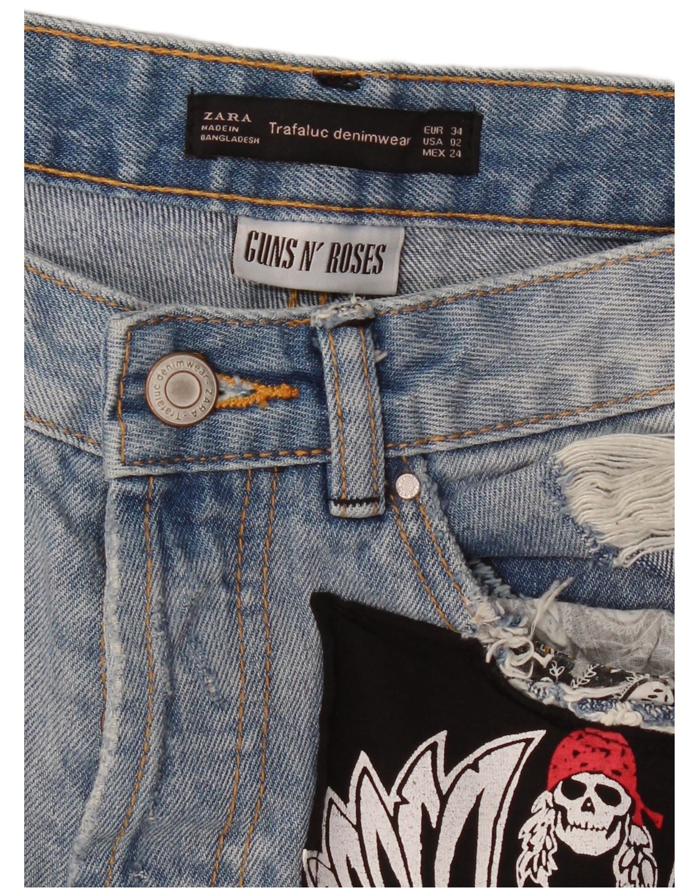 ZARA Womens Guns & Roses Distressed Denim Shorts EU 34 2XS W24 Blue