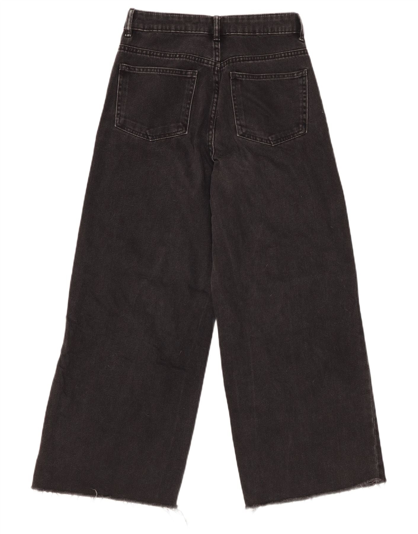 ZARA Womens High Rise Crop Wide Leg Jeans W22 L25 Black Bomuld