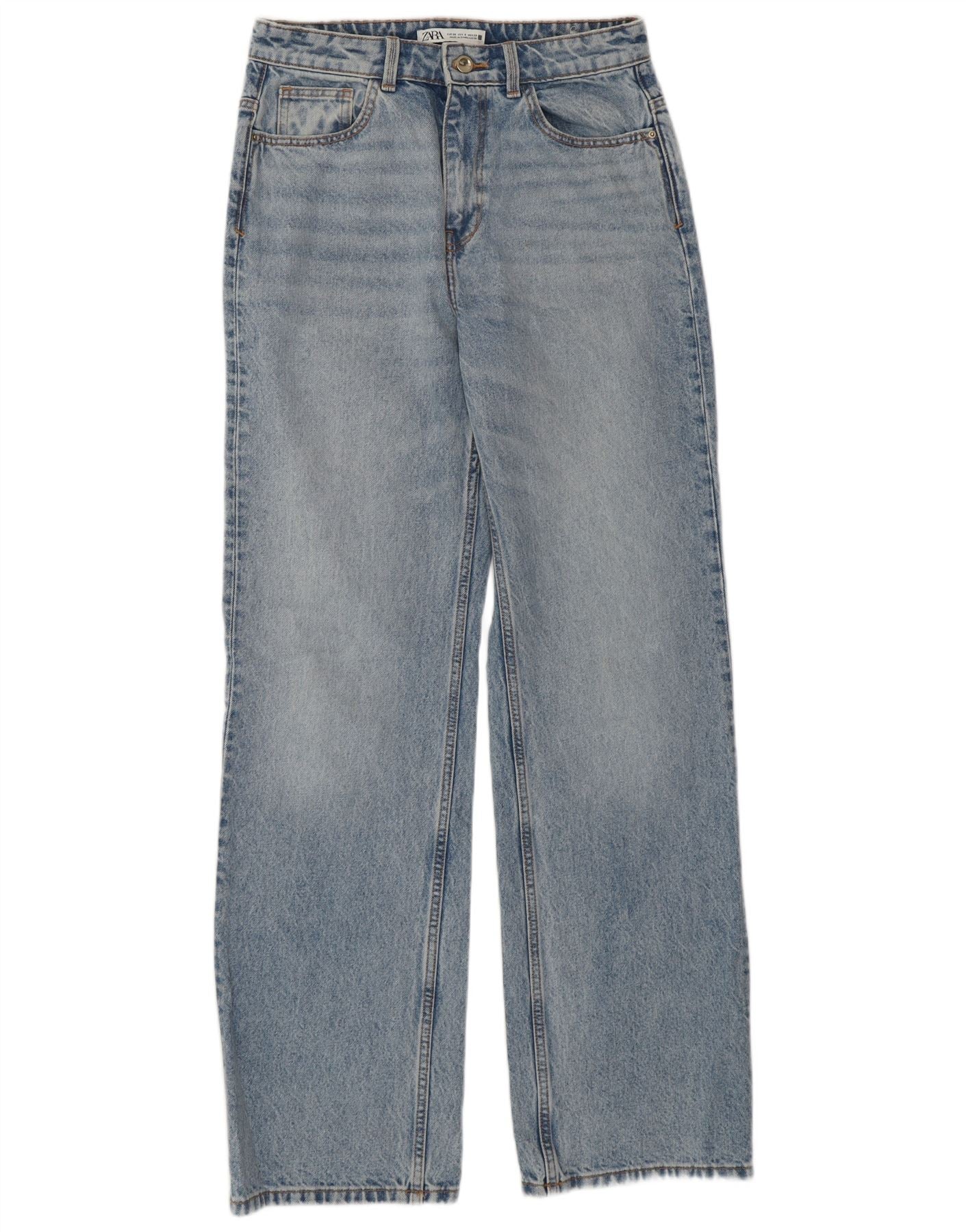 Zara Dame Højtaljede Straight Jeans EU 38 Small W28 L32 Blå Bomuld