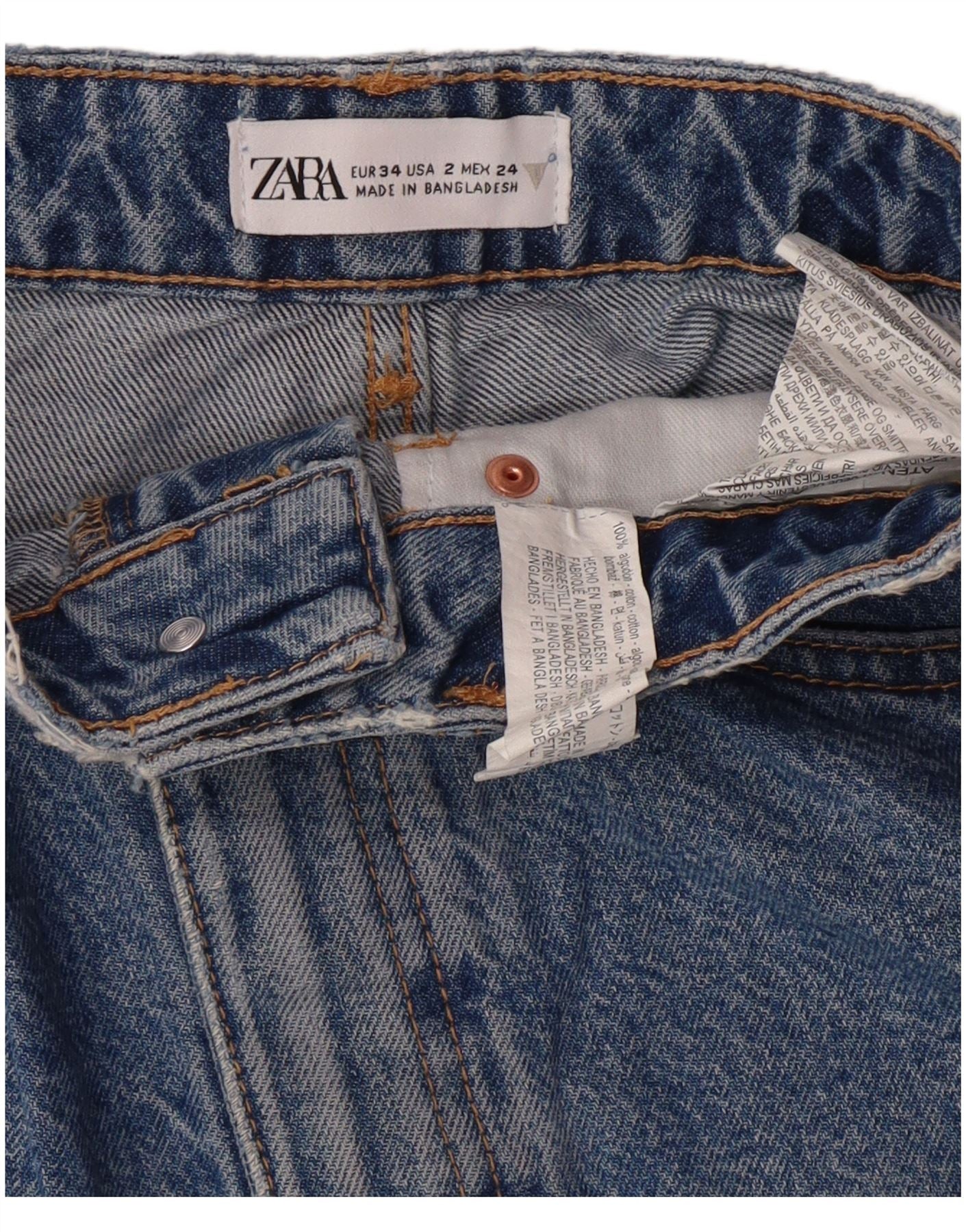 Zara Dame High Waist Denim Shorts EU 34 2XS W24 Blue Cotton Classic