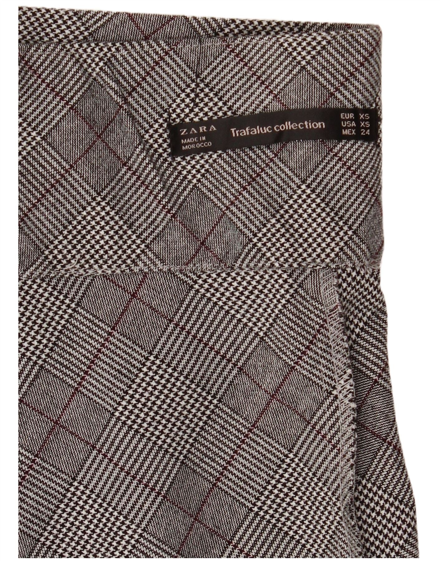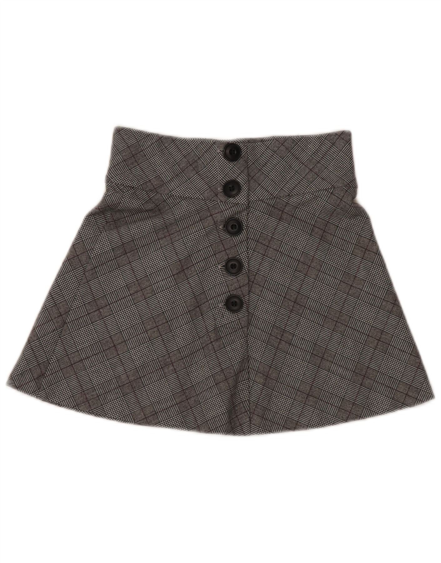 Zara Dame Højtalje Mininederdel XS W26 Grå Plaid
