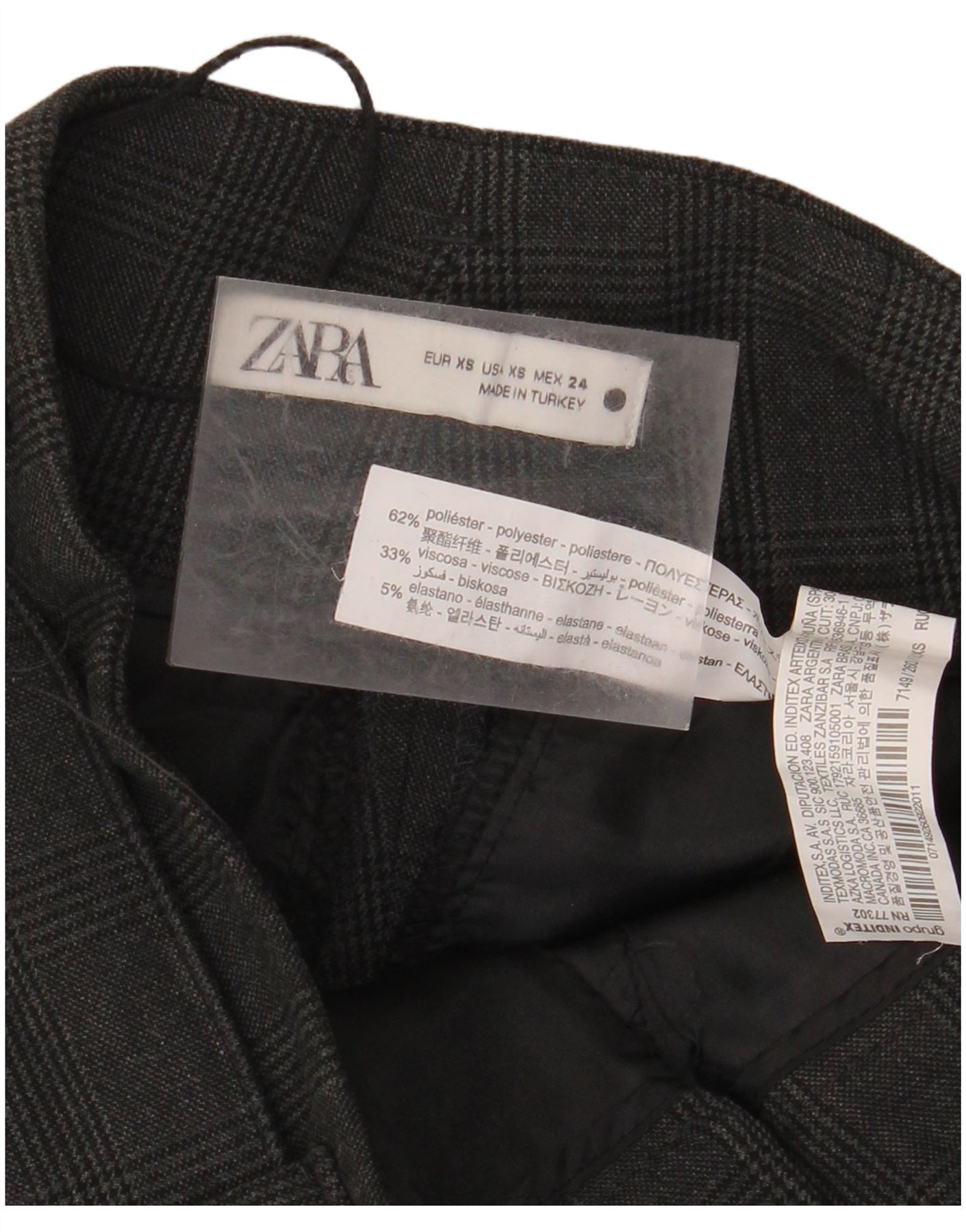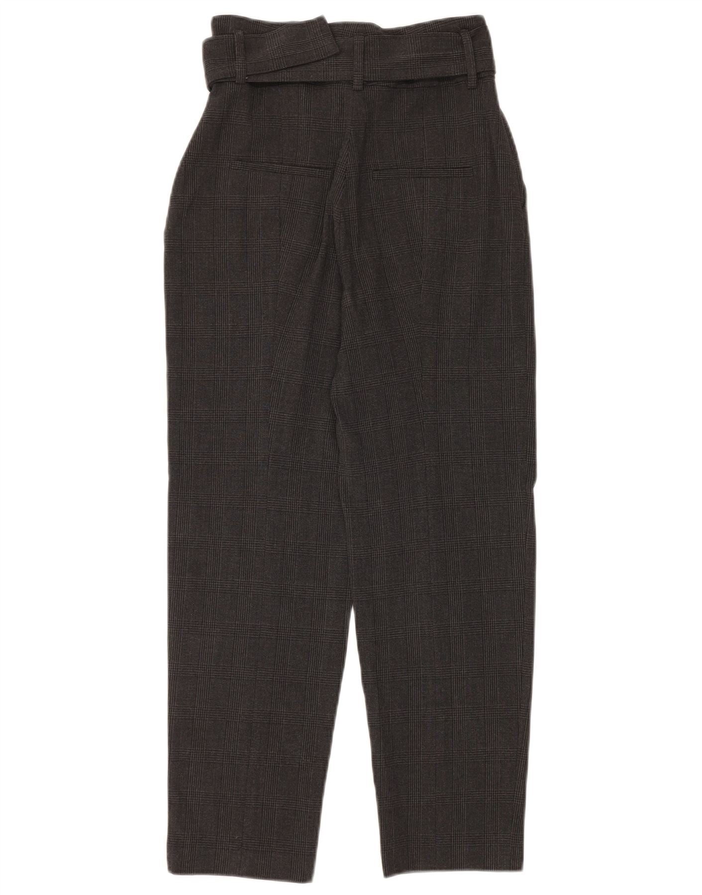 ZARA Højtaljede koniske jakkesætbukser til kvinder XS W24 L26 Grå ternet