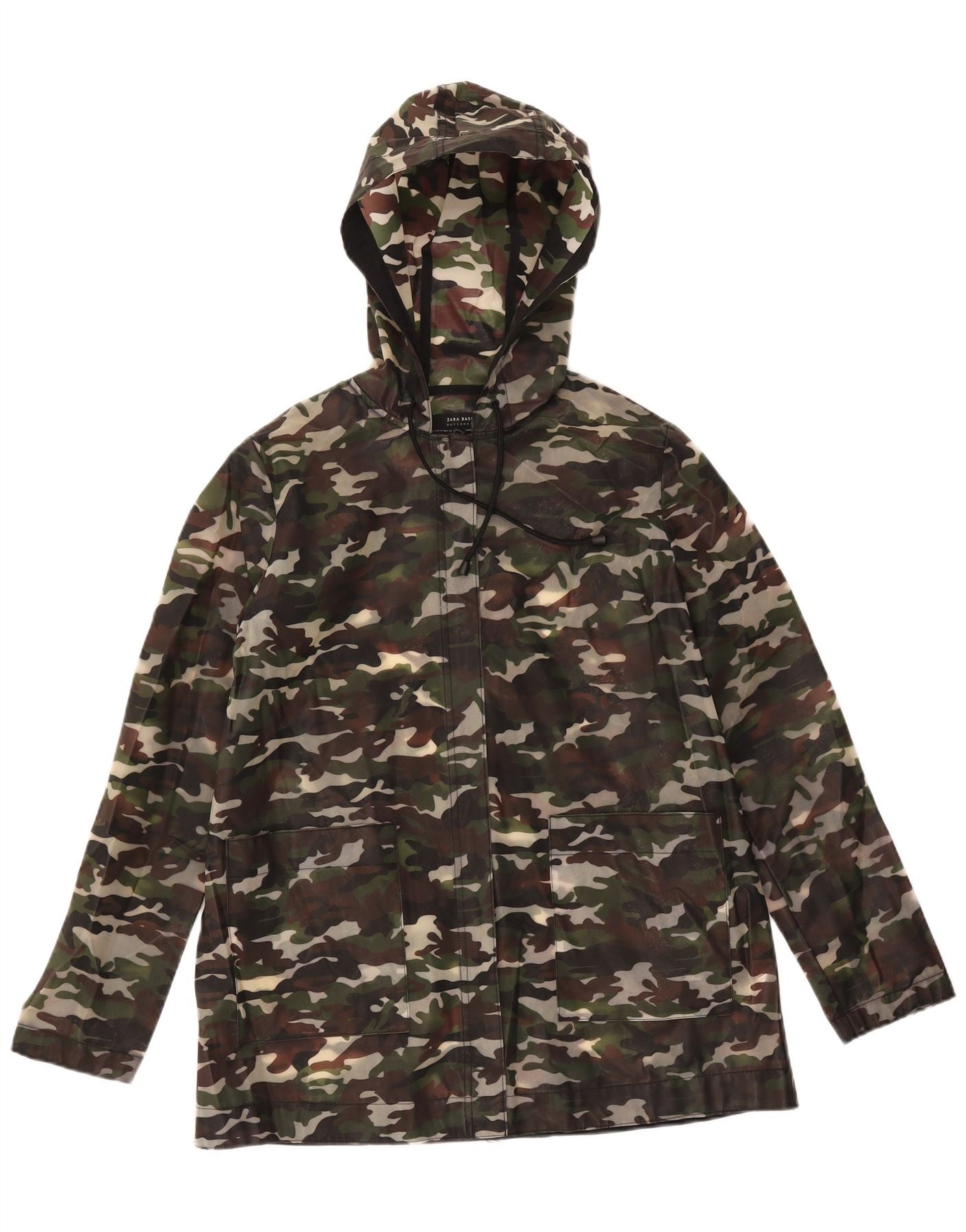 ZARA Militærjakke med hætte til kvinder UK 14 Medium Khaki Camouflage