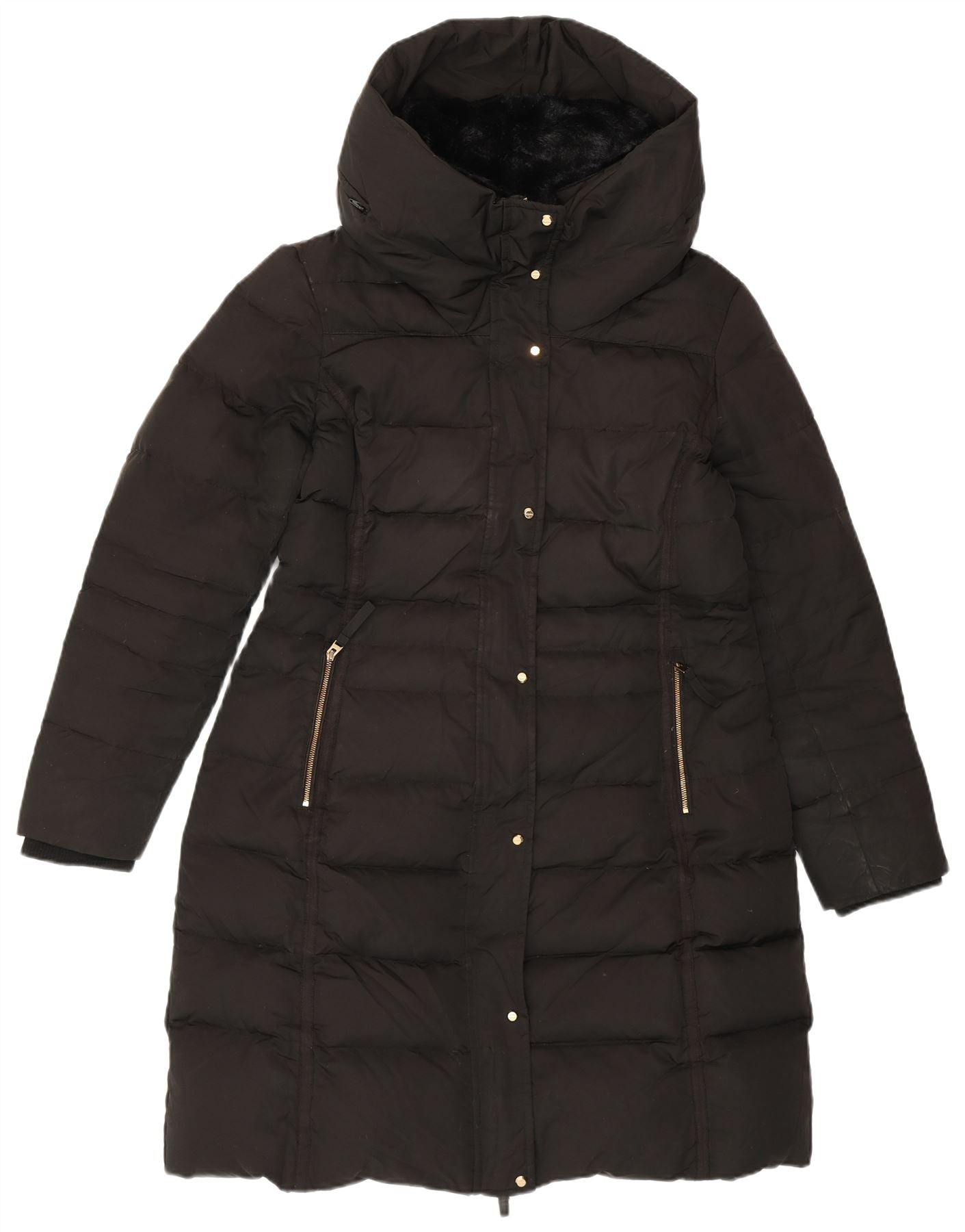 ZARA Polstret frakke med hætte til kvinder UK 18 XL Sort