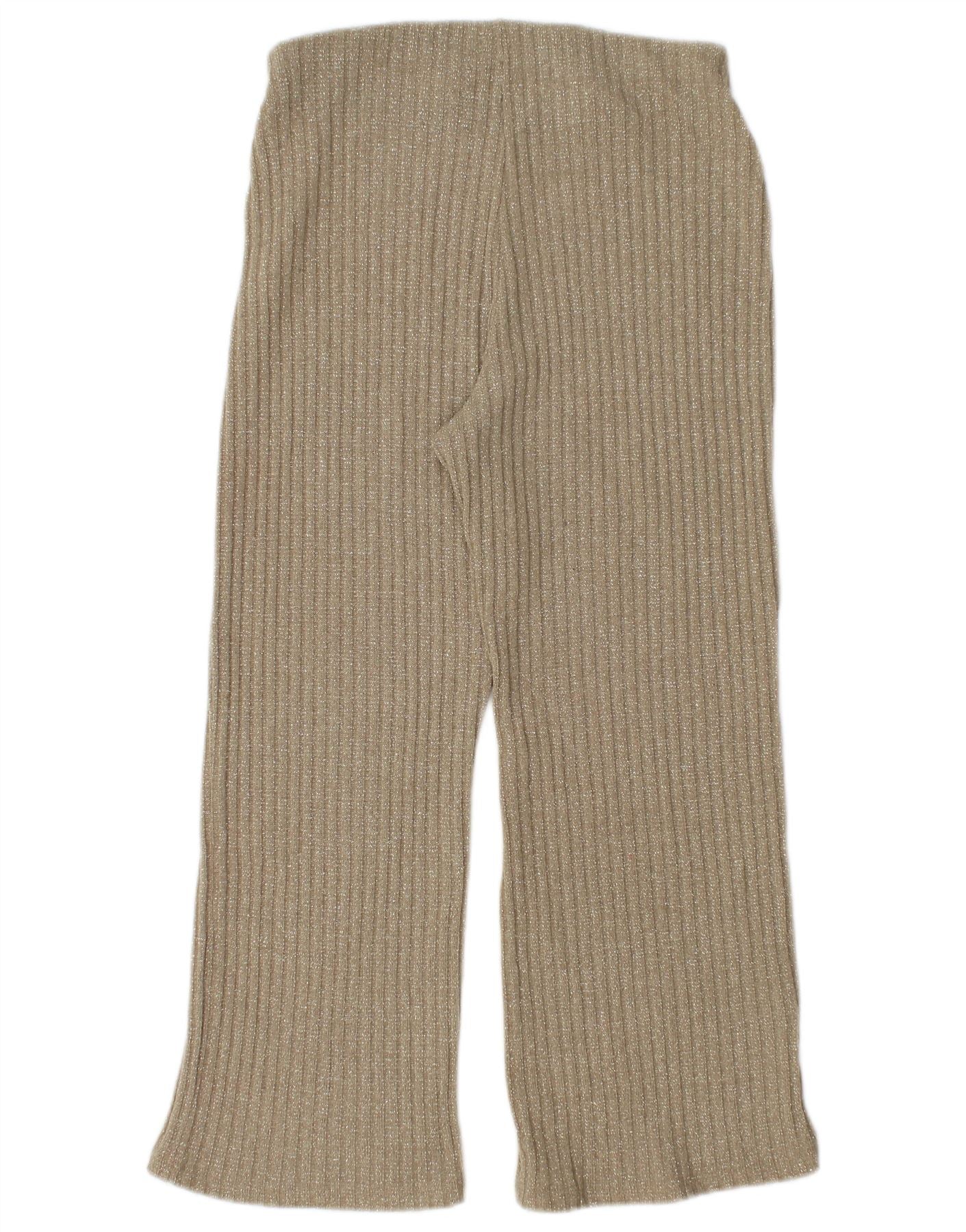 Zara Womens Knit Crop Træningsdragt Bukser UK 12 Medium Gold Flecked