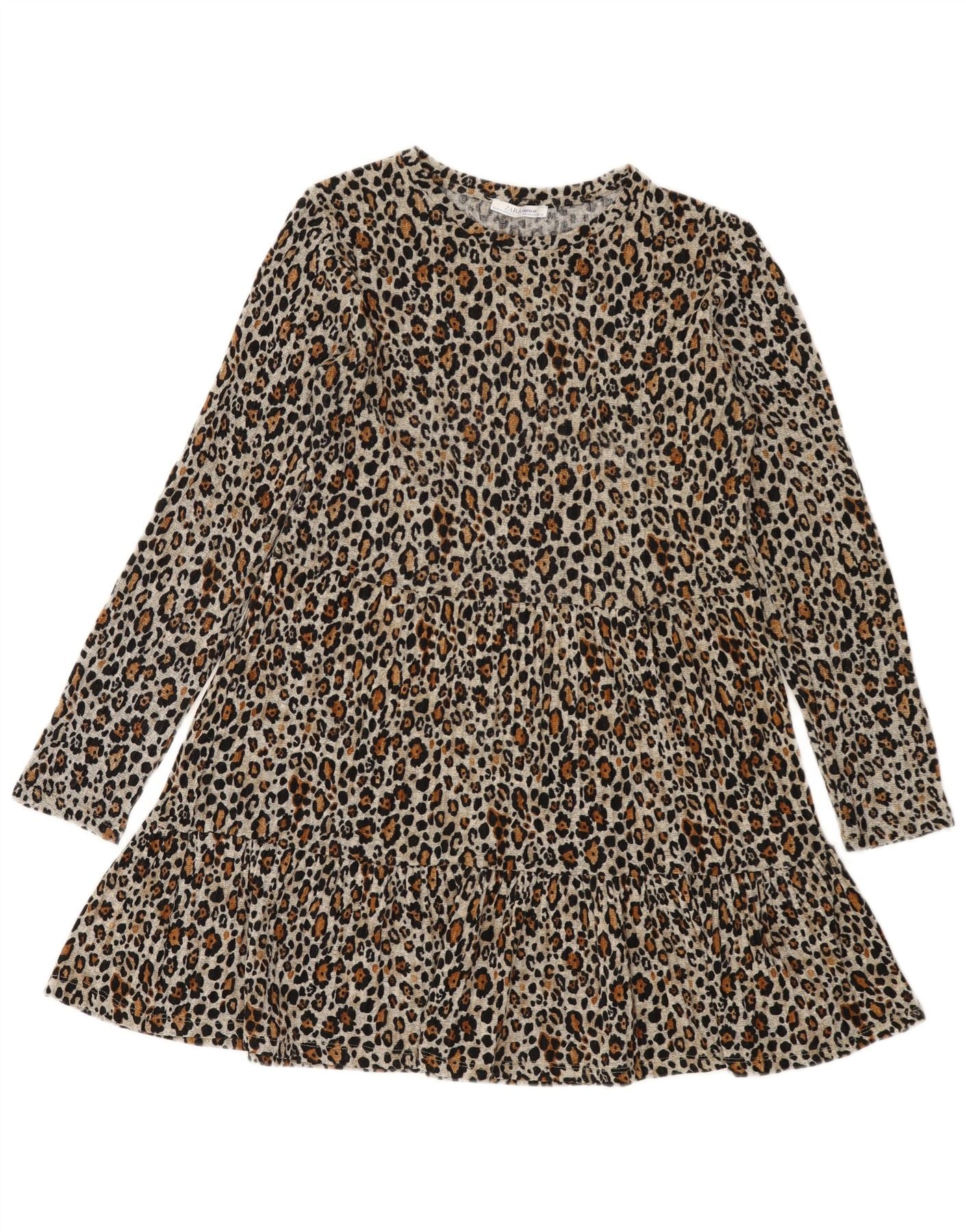 Zara Dame Langærmet A-Line Kjole UK 12 Medium Grey Animal Print