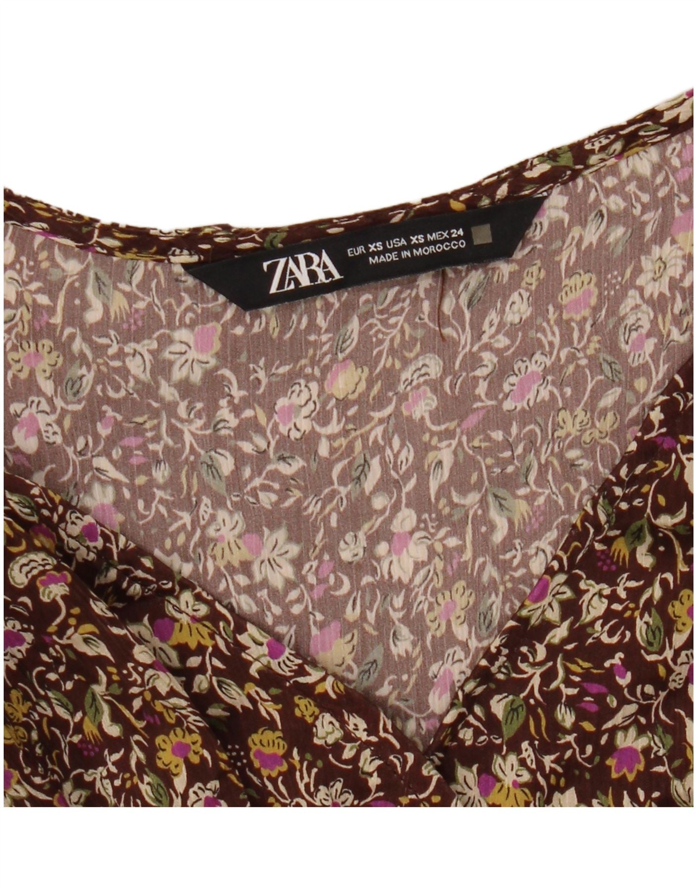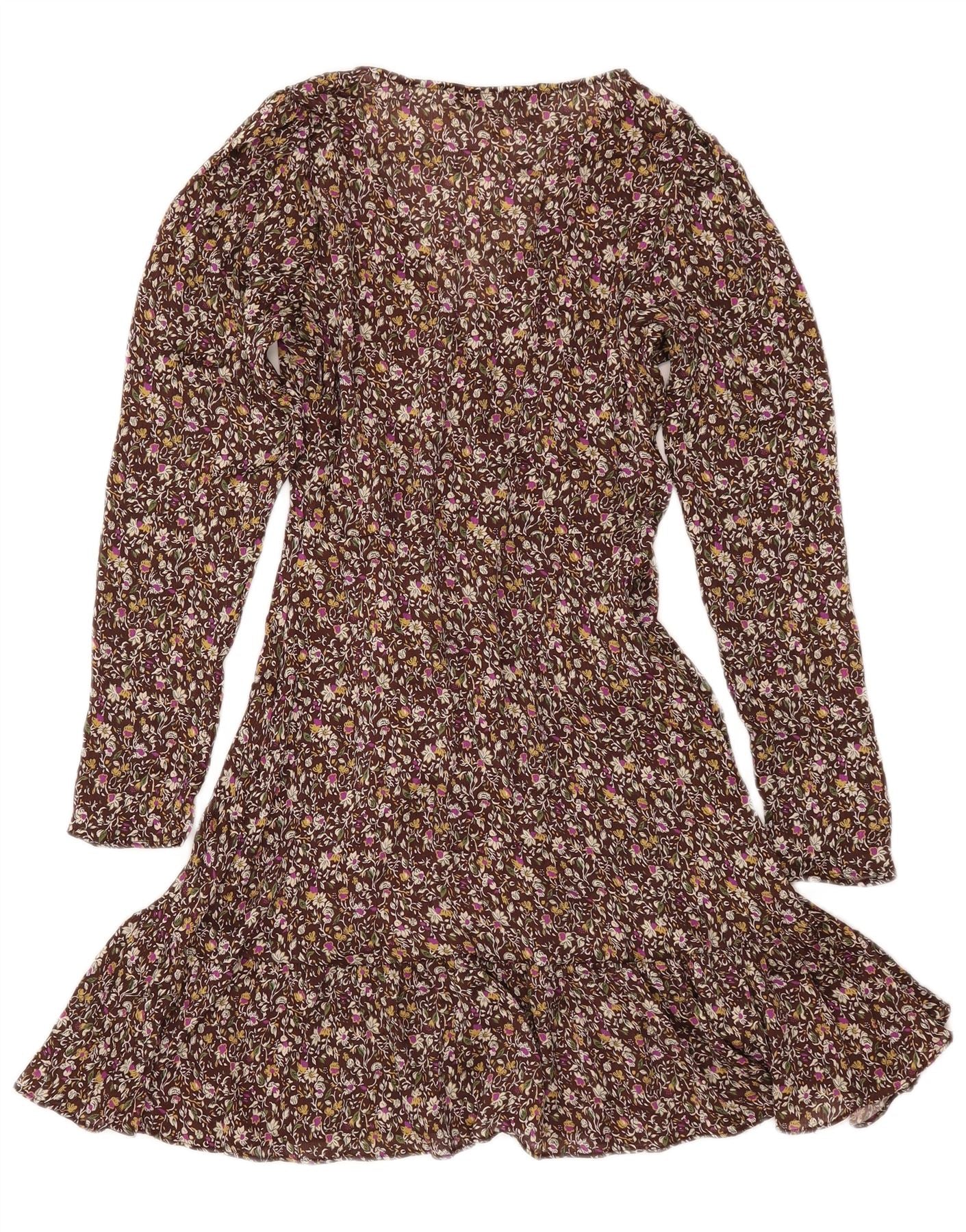 ZARA langærmet slå-om-kjole til kvinder UK 6 XS Brown Floral