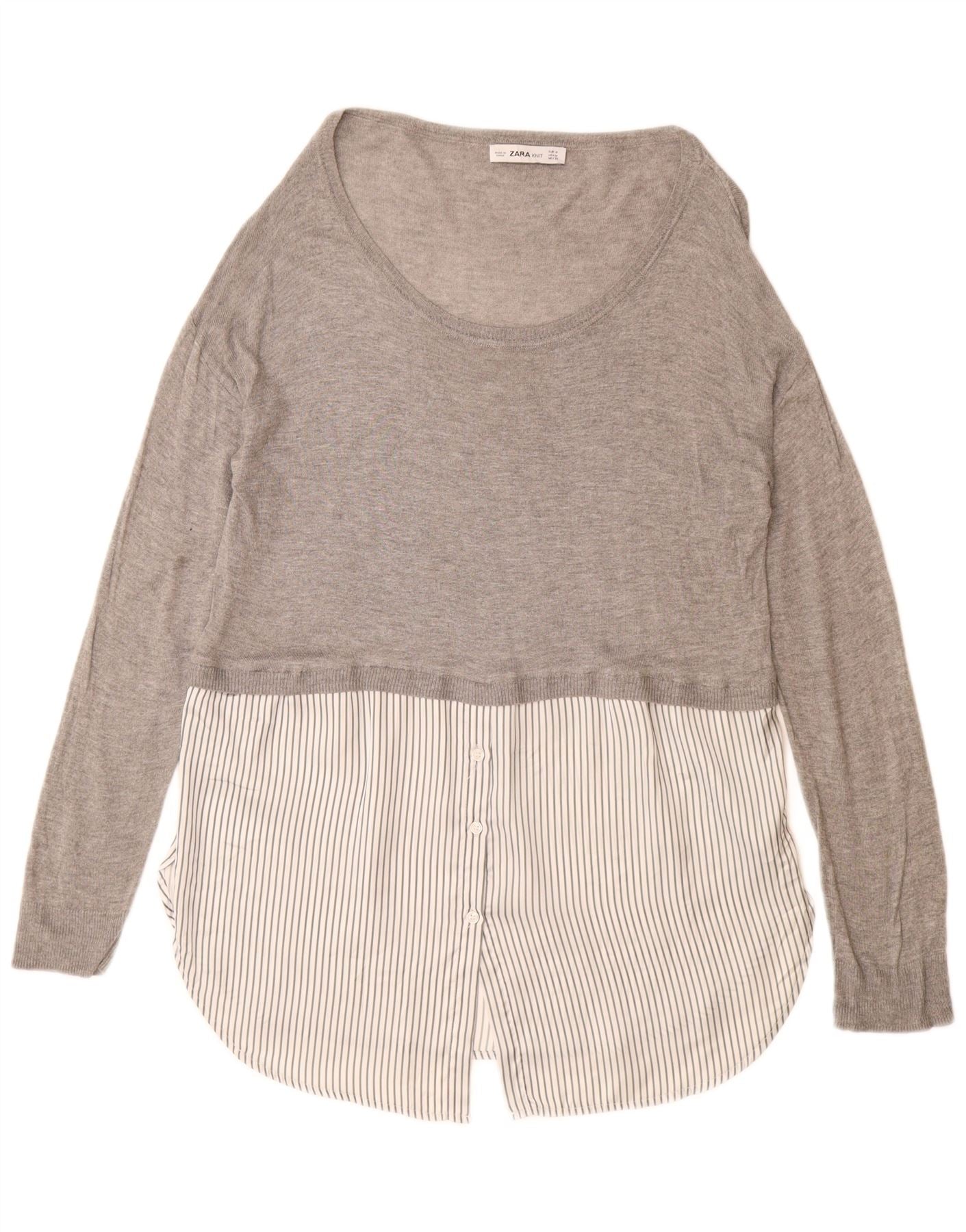 ZARA Dame Longline Boat Neck Jumper Sweater UK 14 Medium Grey Viscose