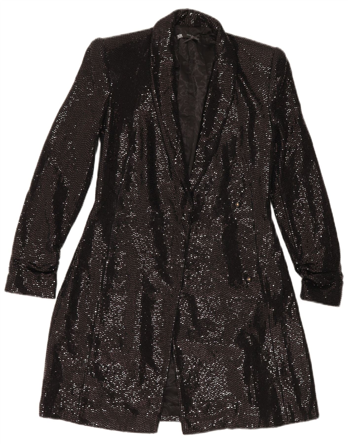 ZARA Womens Longline Open Blazer Jacket UK 6 XS Sort Polyamid