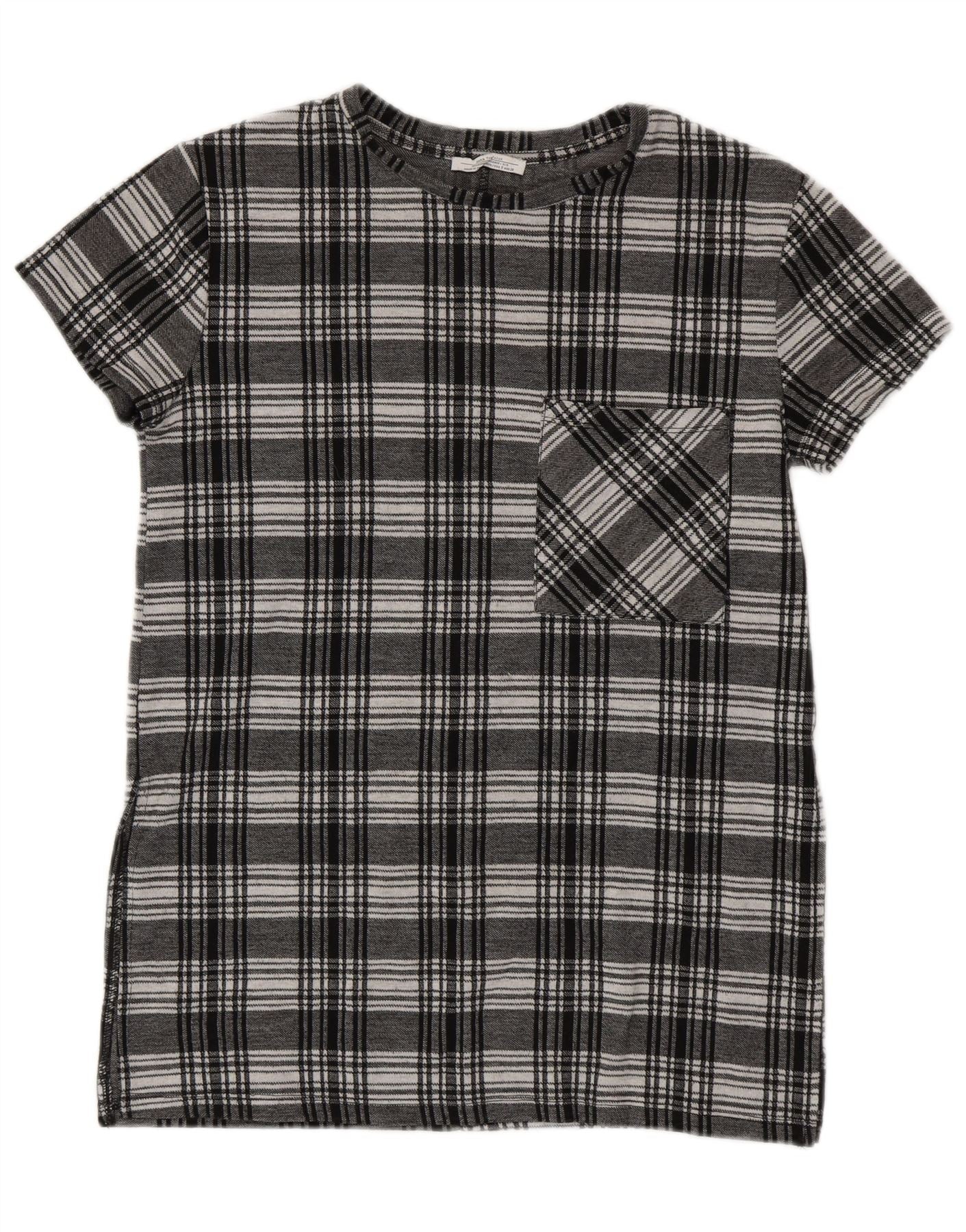 ZARA Dame Longline Kortærmet Bluse Top UK 10 Small Black Plaid