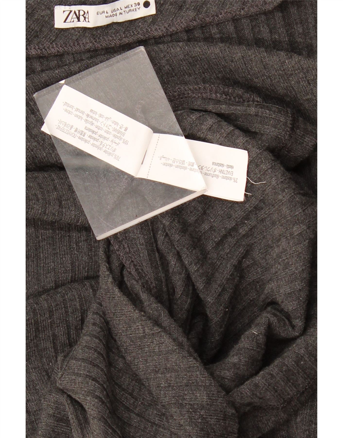 - AI beskrivelse: Denne Zara T-shirt top til kvinder er lavet af en grå strikblanding af polyester og elastan. Det giver en behagelig stretch-tekstur. Den høje hals og lange ærmer giver en slank silhuet. Dens regelmæssige pasform sikrer let at bære. Subtil plissering på siden tilføjer en moderne, struktureret detalje. Denne pullover-design kombinerer komfort med moderne stil.