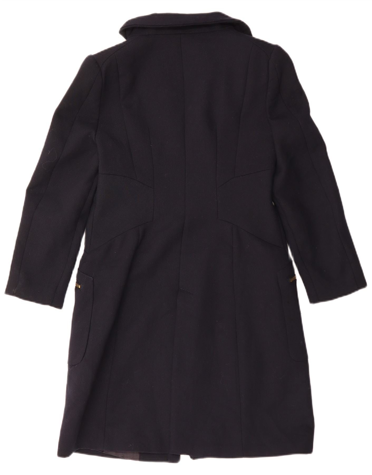 Zara Dame Overfrakke UK 14 Large Navy Blue Polyester