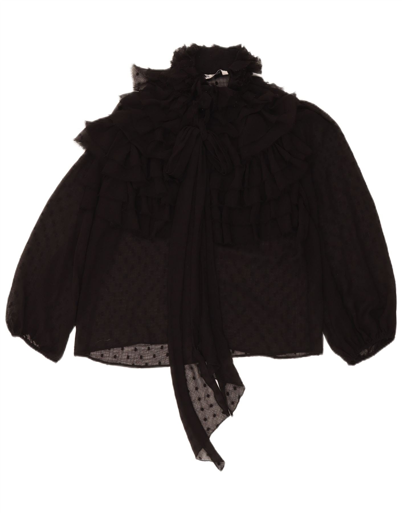 Zara Dame Oversized Bluse Top UK 10 Small Black Spotted