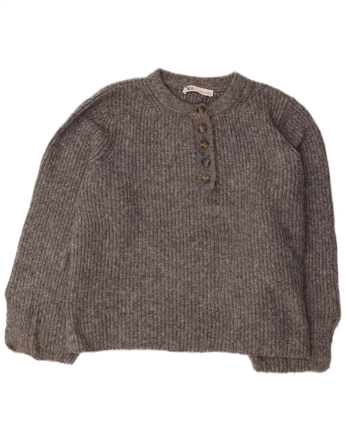ZARA dame sweater med rund hals i overstørrelse UK 10 lille grå akryl