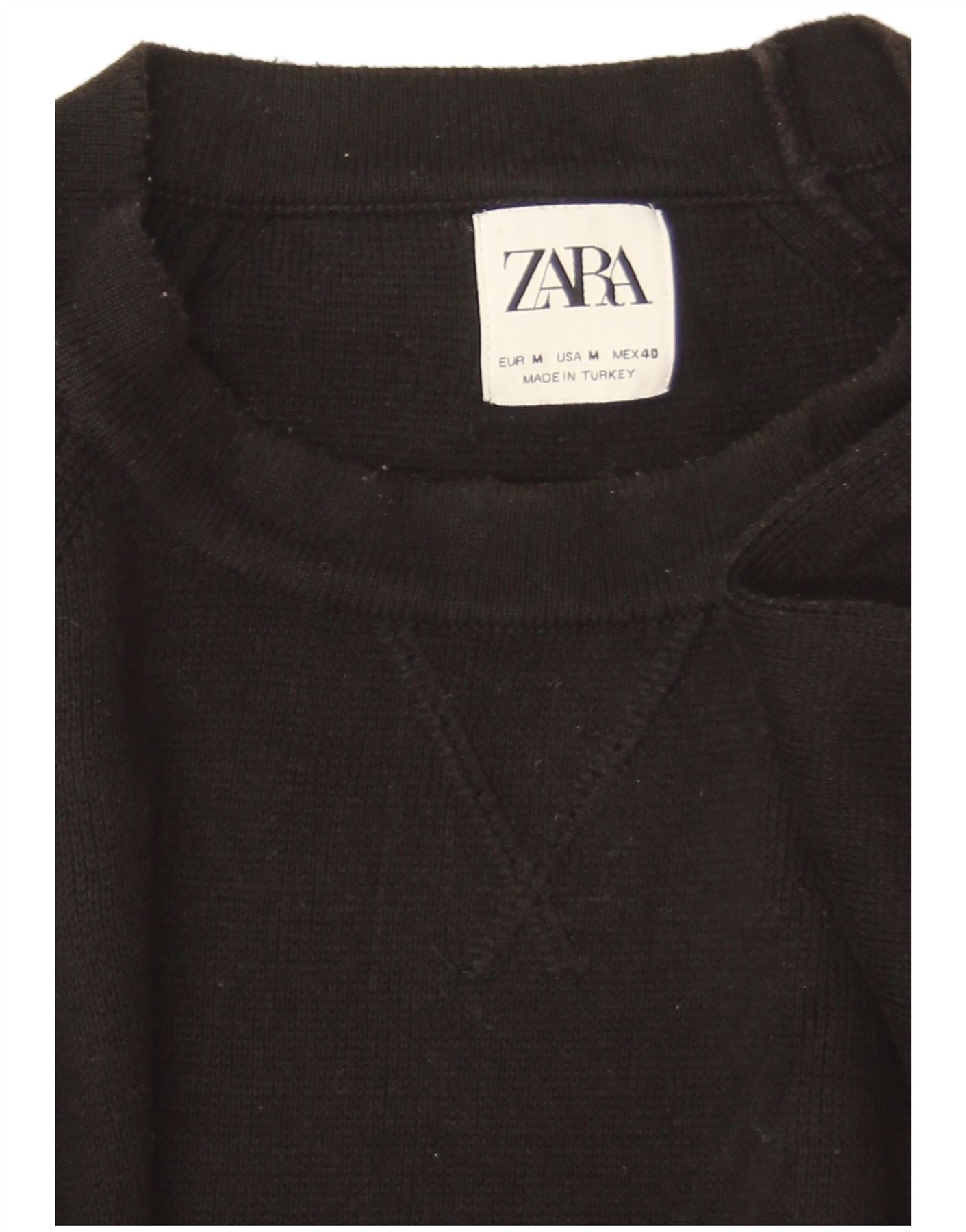 Zara Dame Oversized Crew Neck Jumper Sweater UK 14 Medium Sort Bomuld