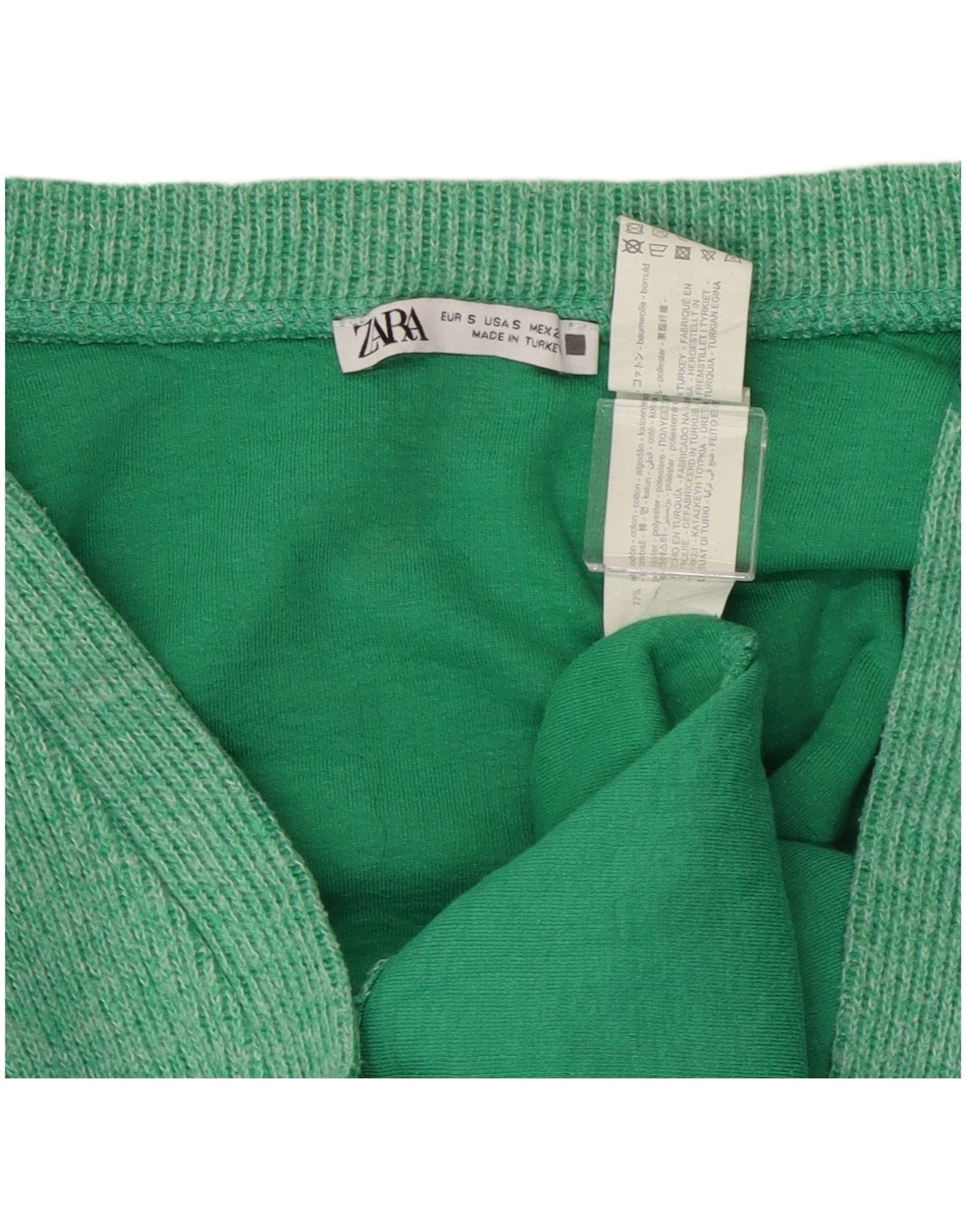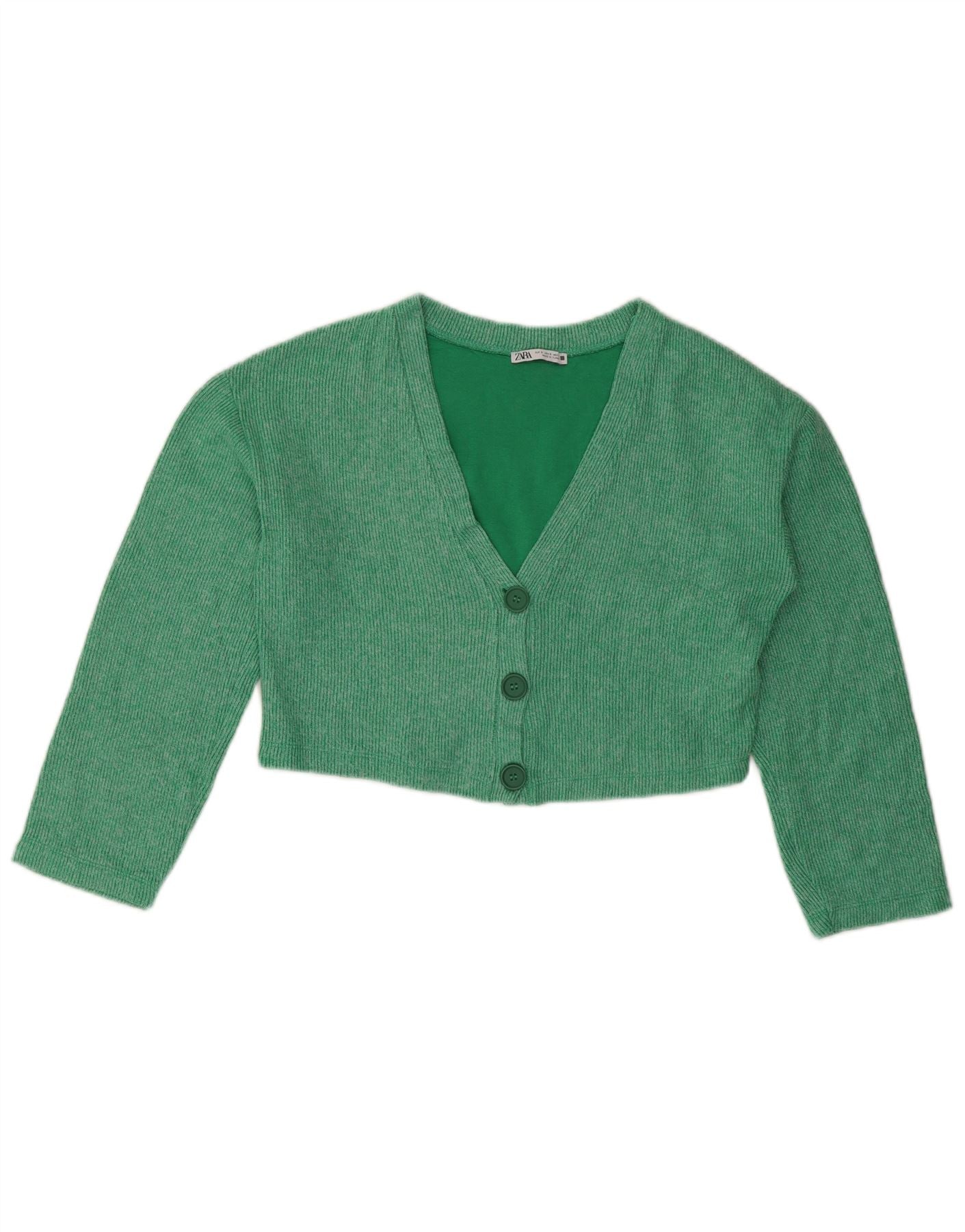 ZARA Kvinders Oversized Crop Cardigan Sweater UK 10 Lille grøn bomuld