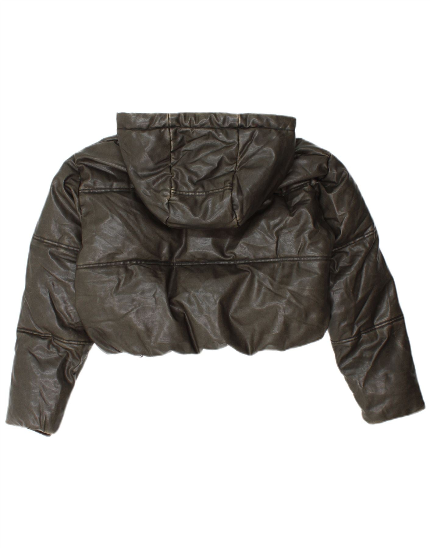 ZARA Dame Oversized Crop Hætte polstret jakke UK 10 Small Khaki