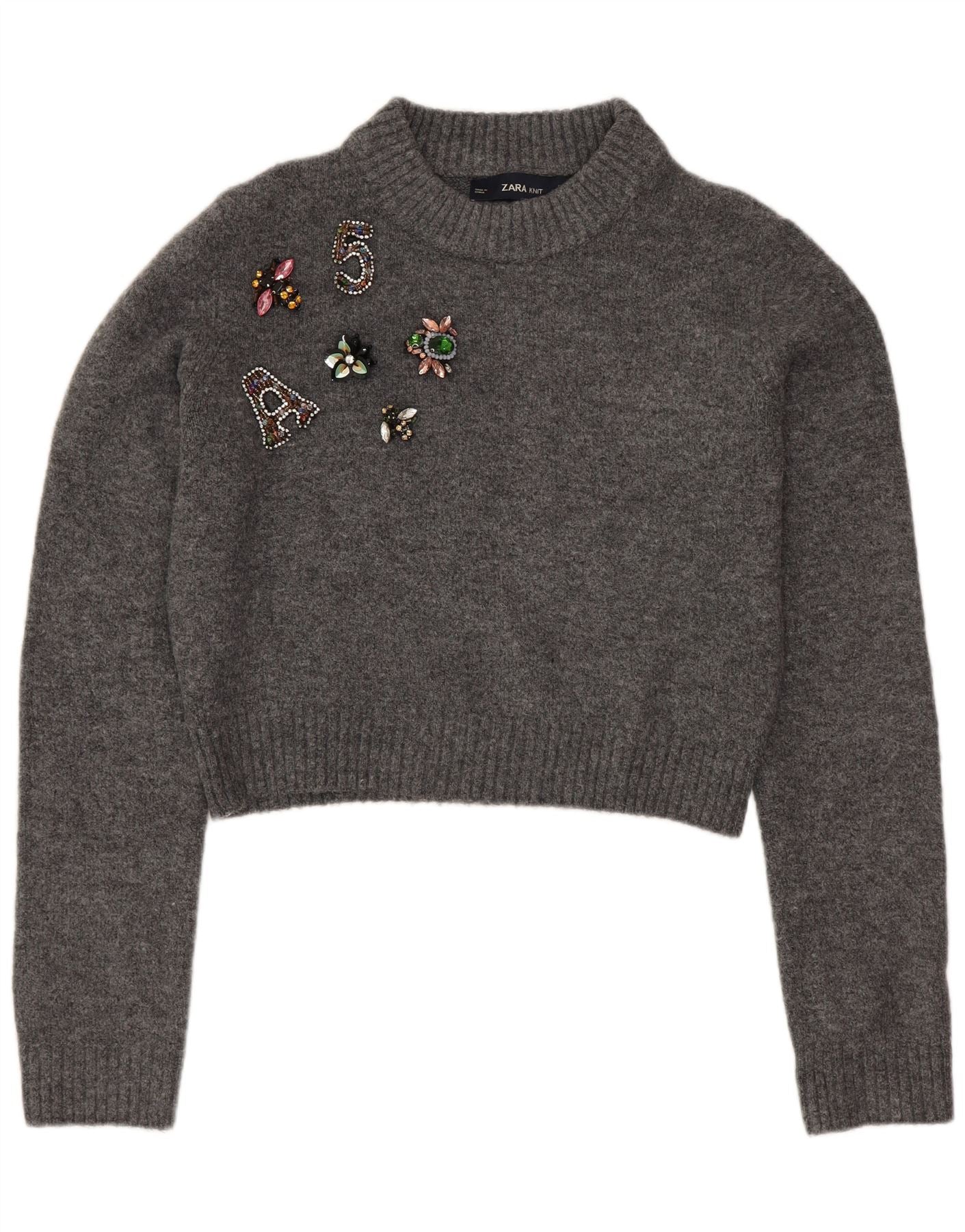 Zara Dame Oversized grafisk Crew Neck Jumper Sweater UK 10 Small Grey
