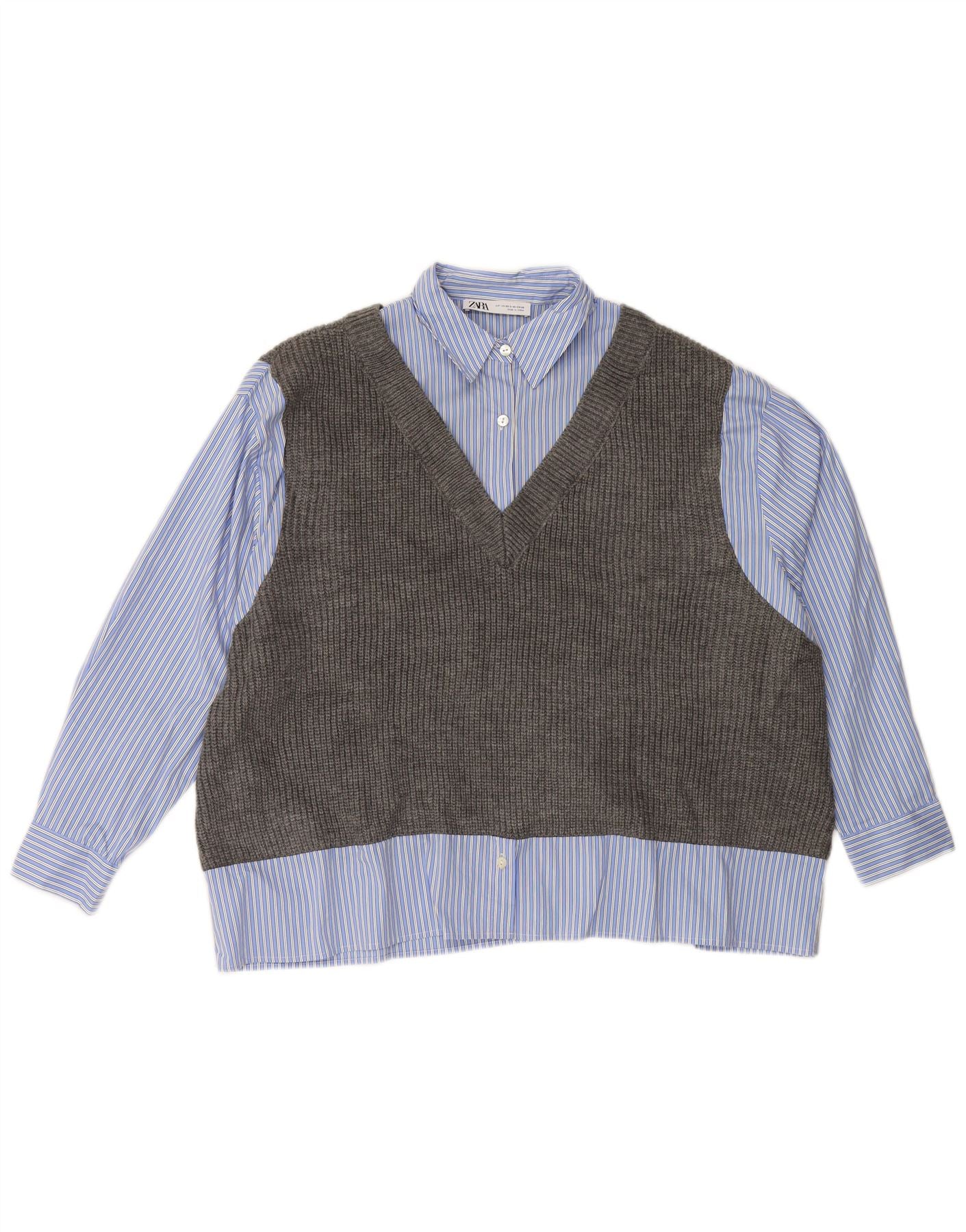 ZARA Oversized strikvest skjorte til kvinder DK 6 XS blå stribet