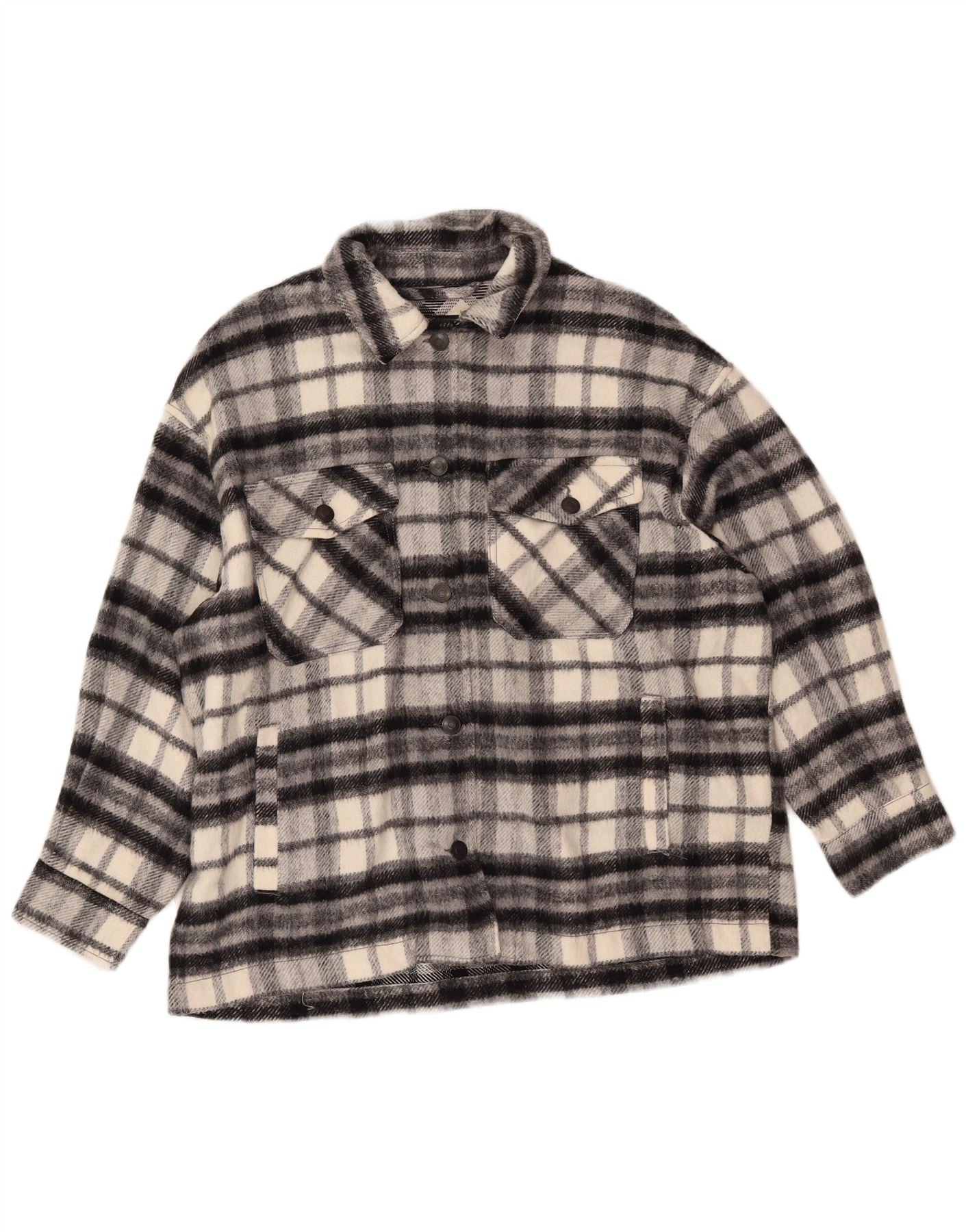 ZARA Oversized oversize overshirt til kvinder Flanellskjorte UK 16 Stor sort plaid