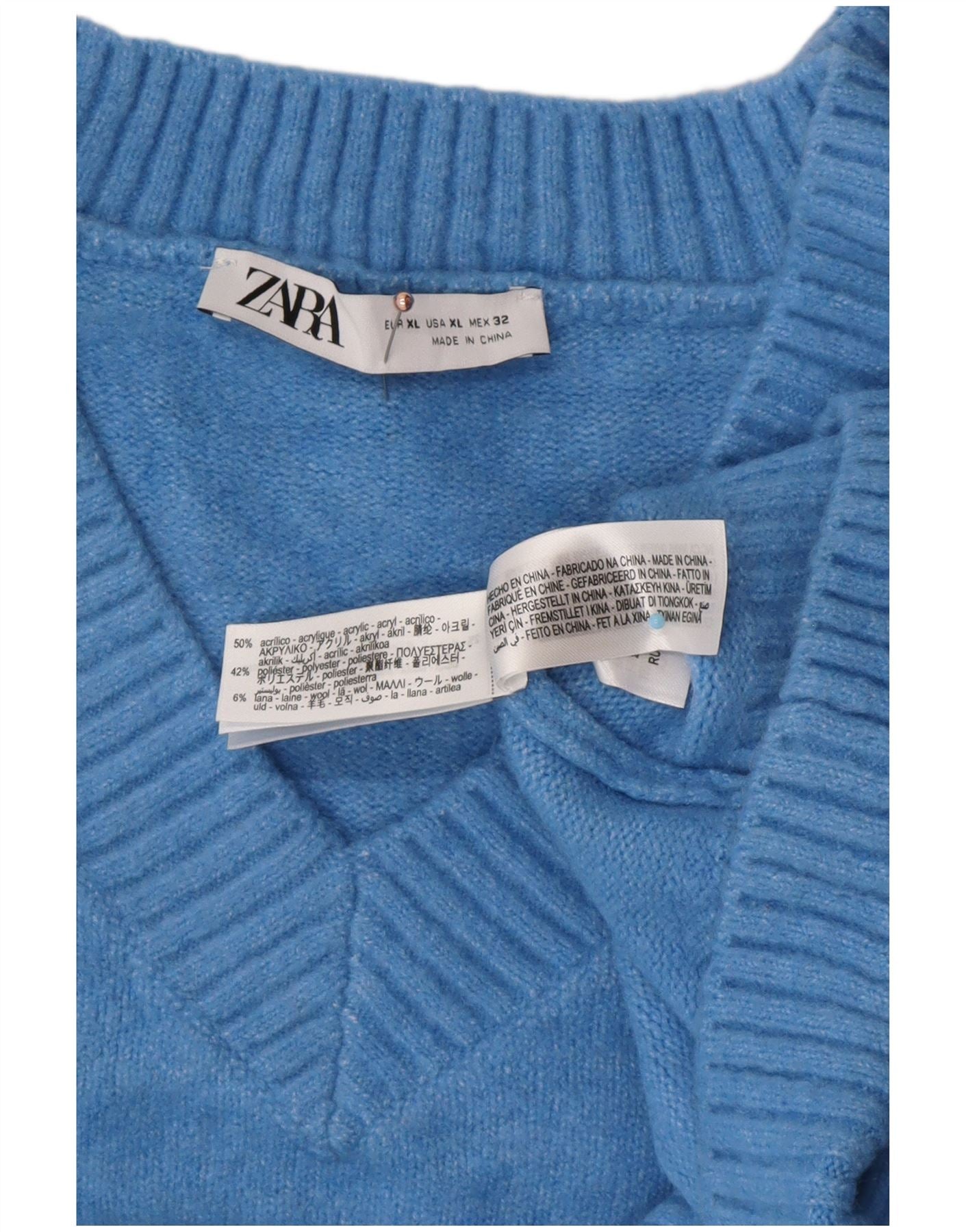 ZARA Dame Oversized V-hals sweater UK 18 XL Blå Akryl