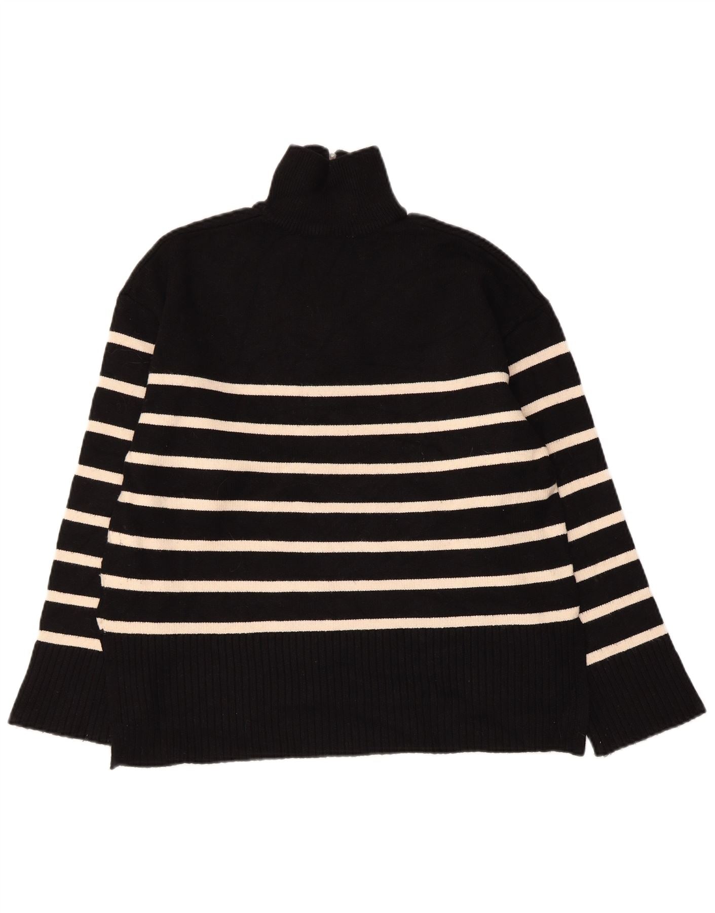 ZARA Dame Oversized Zip Neck Jumper Sweater UK 10 Lille sort stribet