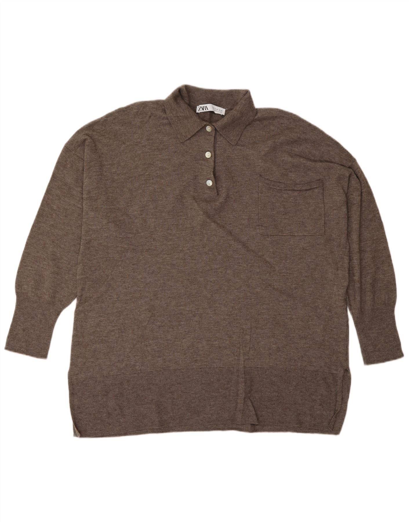 ZARA Dame Polo Neck sweater Medium Brun Uld