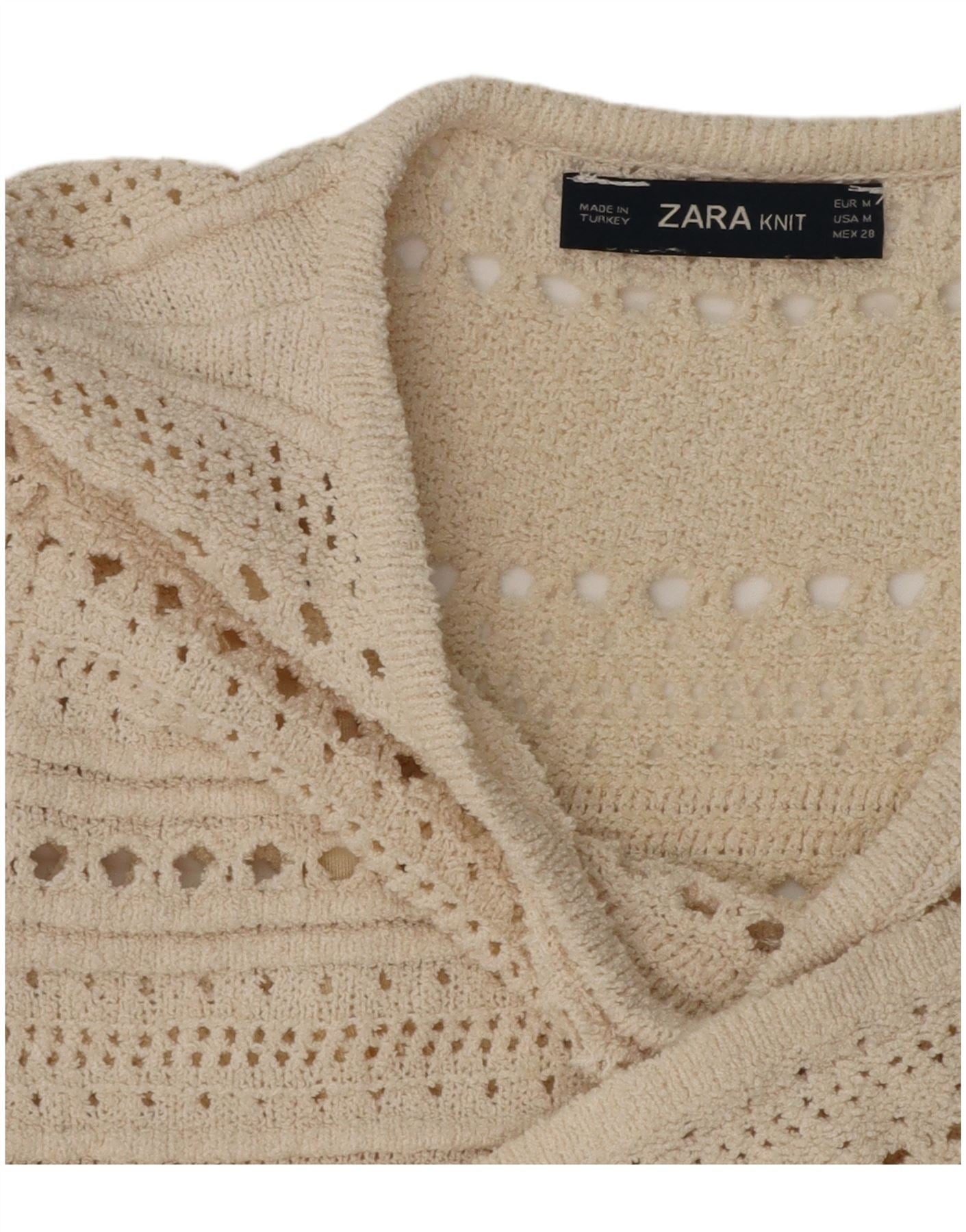 Zara Dame Se Through Kortærmede Jumper Dress UK 12 Medium Off White