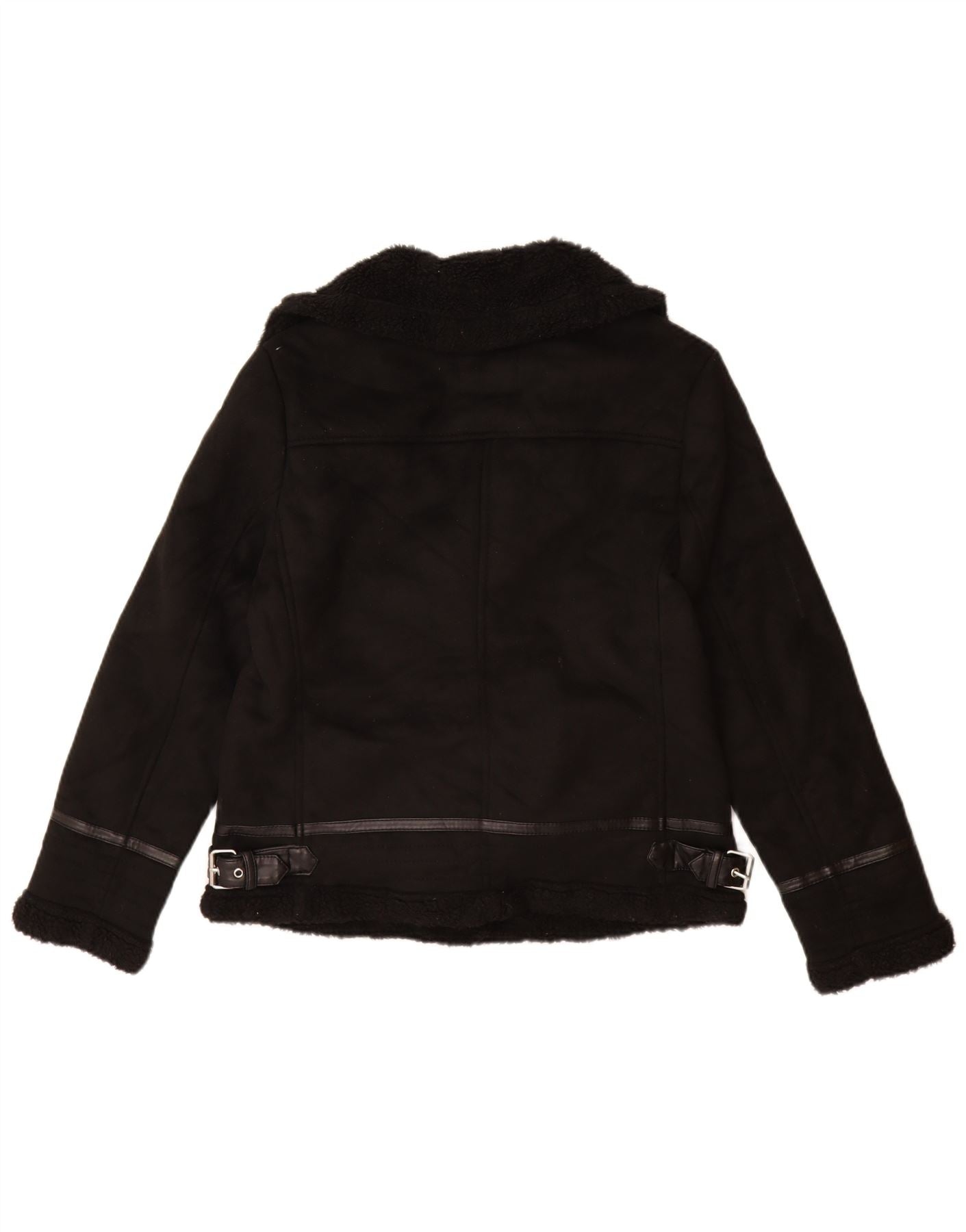 ZARA Sherpa Biker-jakke til kvinder DK 12 Medium Sort Polyester