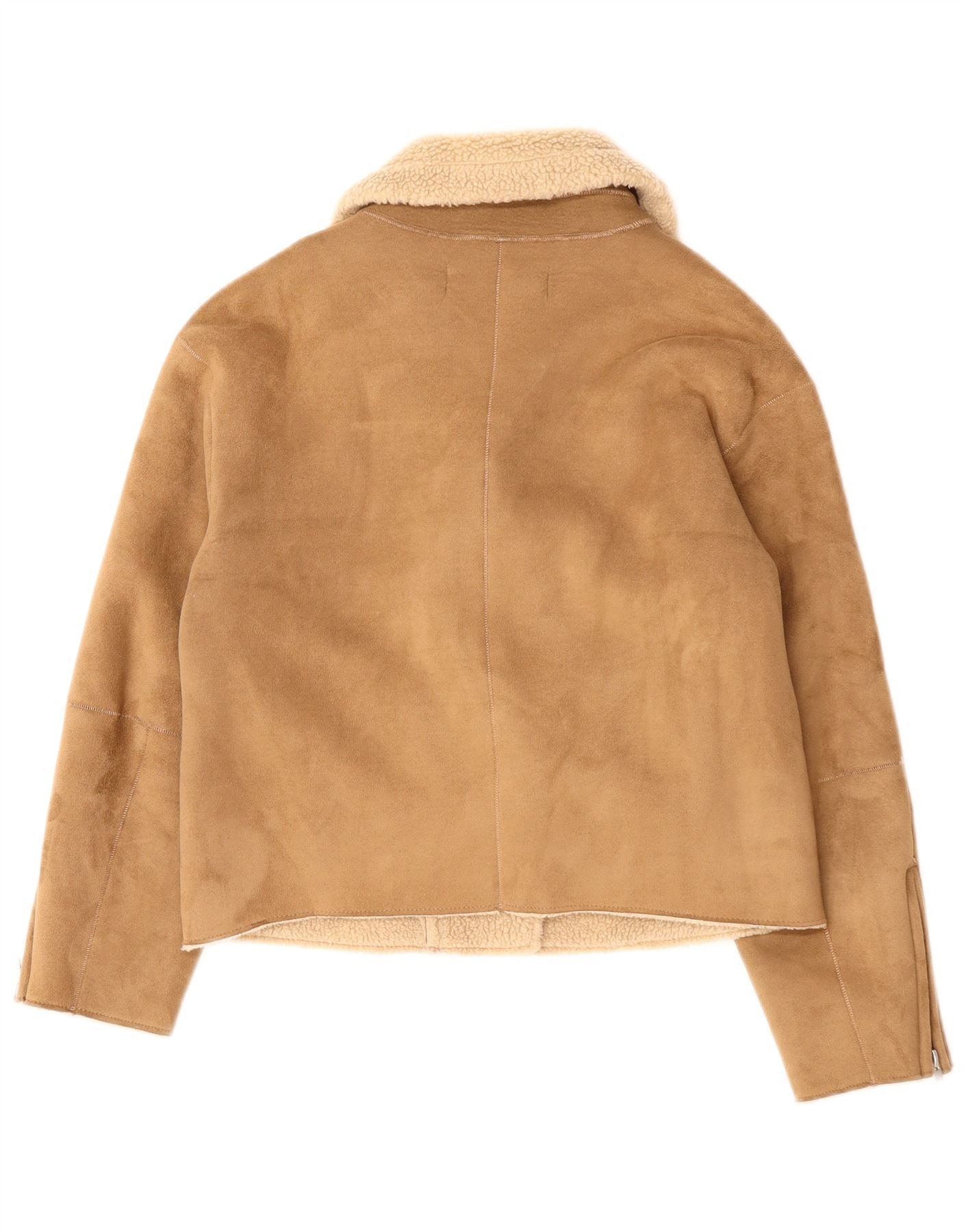 Zara Dame Sherpa Faux Ruskind Biker Jacket UK 10 Small Beige Polyester
