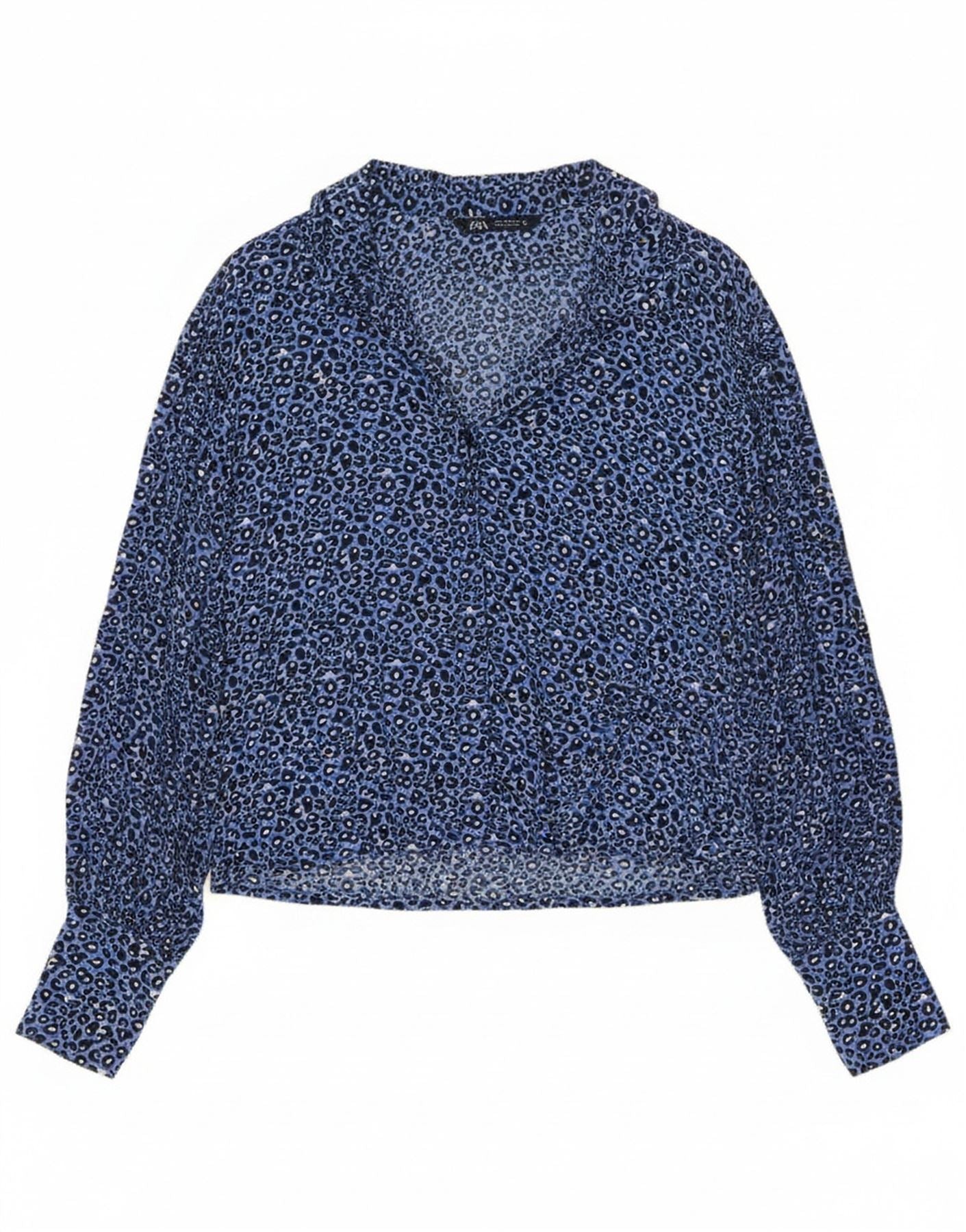 Zara Dameskjorte UK 14 Medium Blue Animal Print