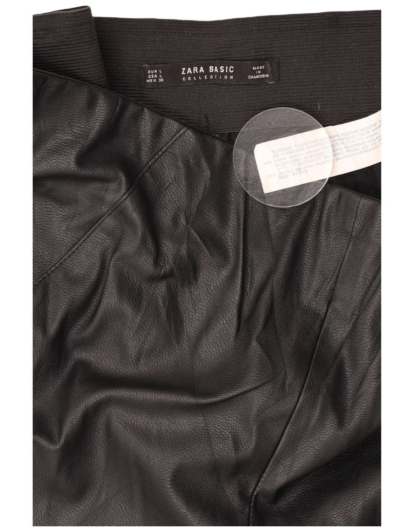 Zara Dame Slim Faux Læder Bukser Large W34 L27 Sort Polyurethan