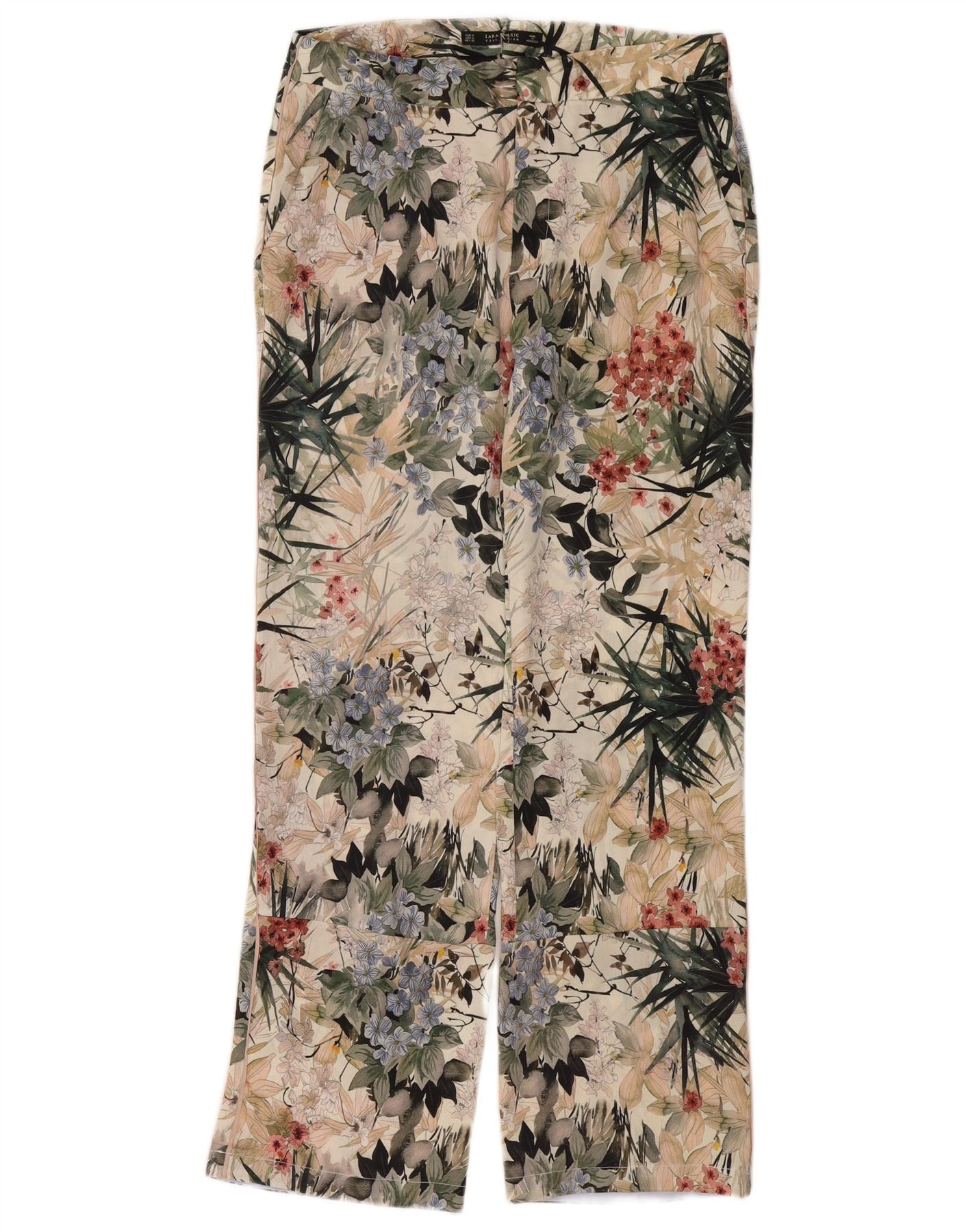 Zara Womens Straight Chino Trousers Medium W28 L29 Multicoloured Floral