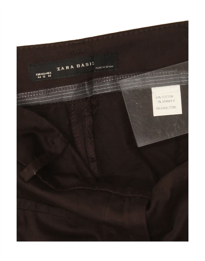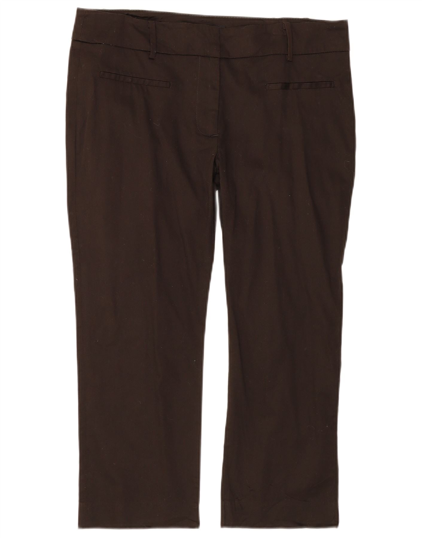 ZARA Womens Straight Cropped Trousers EU 44 XL W34 L23 Brown Cotton