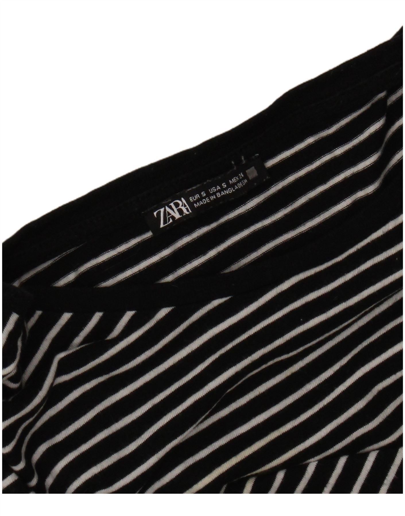 Zara Dame T-Shirt Top UK 10 Lille Sort Stribet
