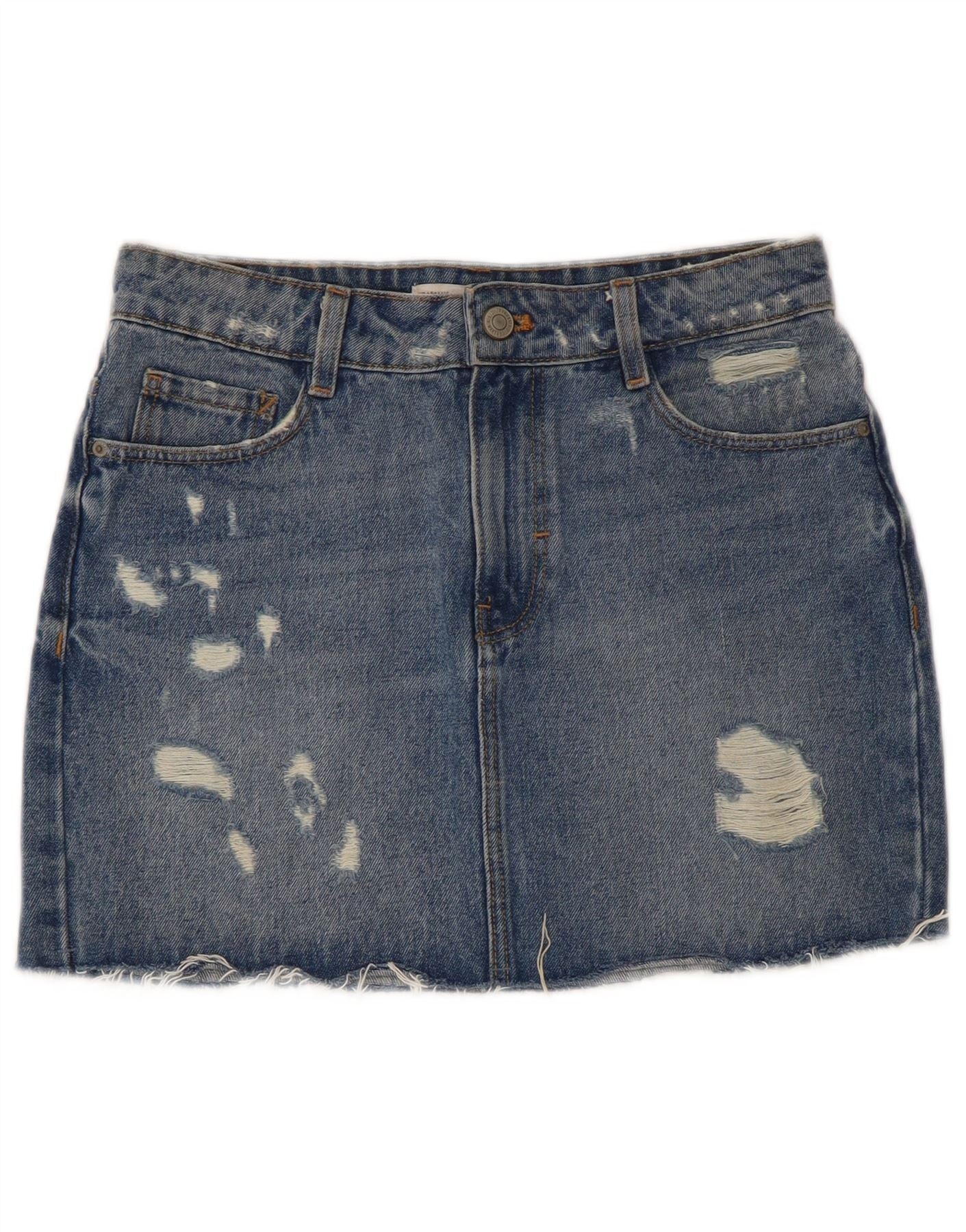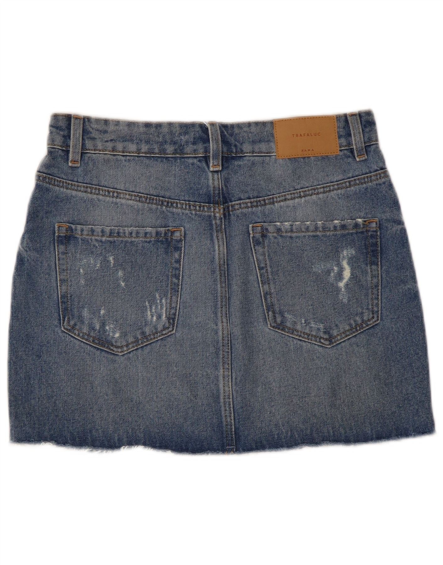ZARA Dame Trafaluc Distressed Mini Denim Nederdel XS W24 Blå Bomuld