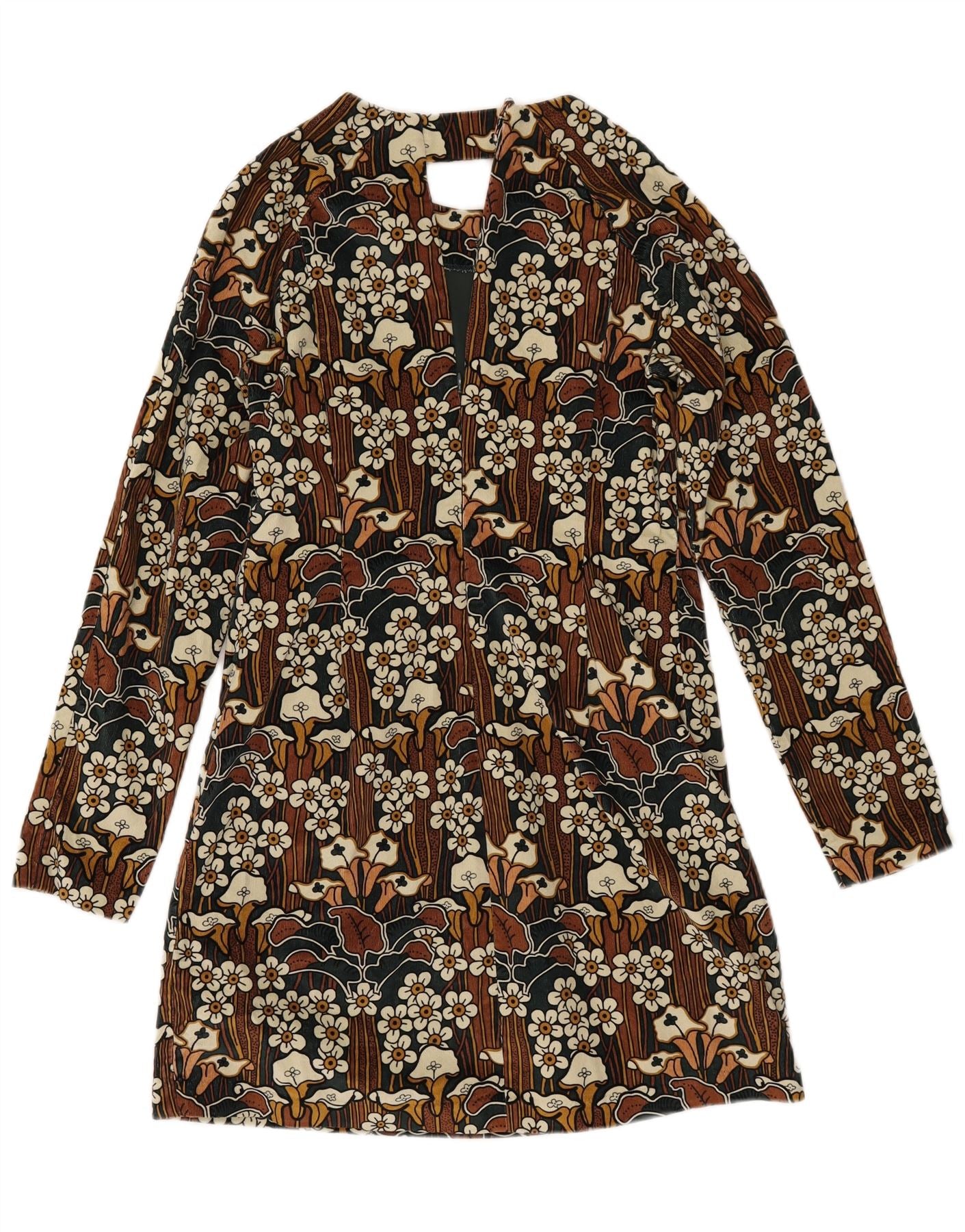 ZARA Dame Trafaluc Langærmet Skede Kjole UK 14 Large Brown Floral