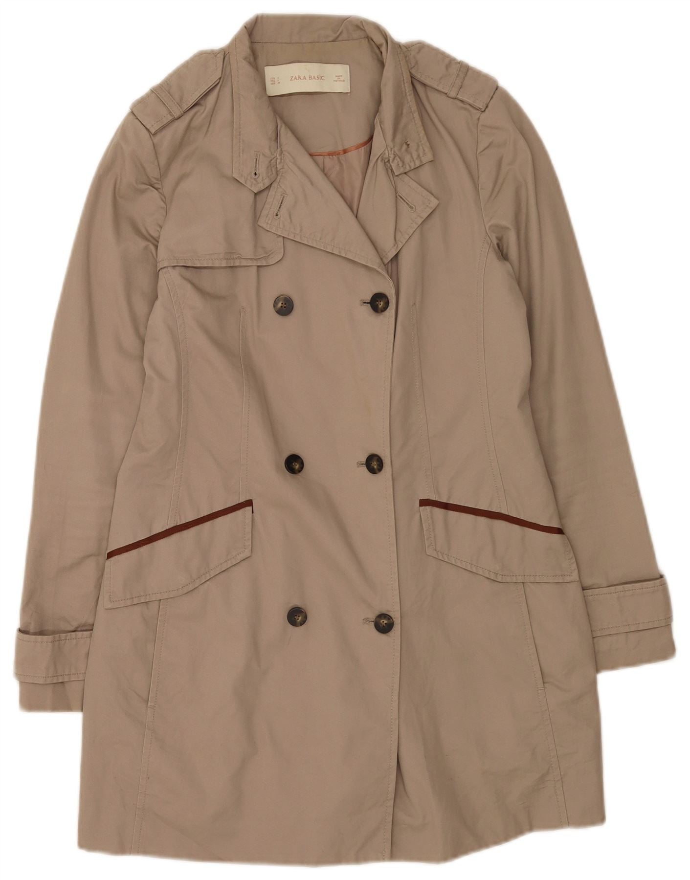 Zara Trench Coat til kvinder UK 10 Small Beige Bomuld
