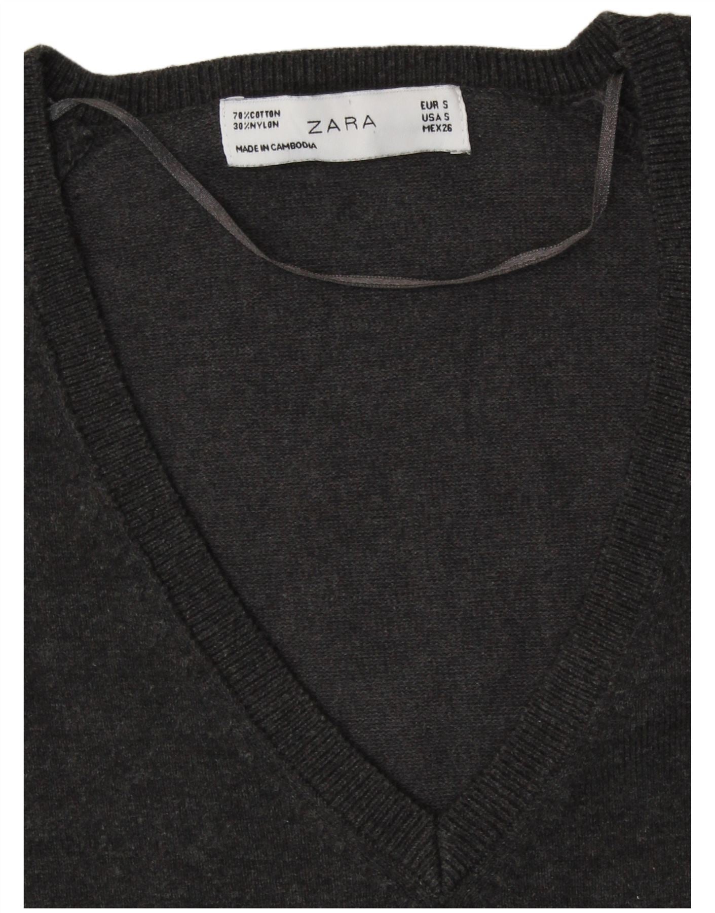ZARA Dame V-hals sweater UK 10 Small Grå