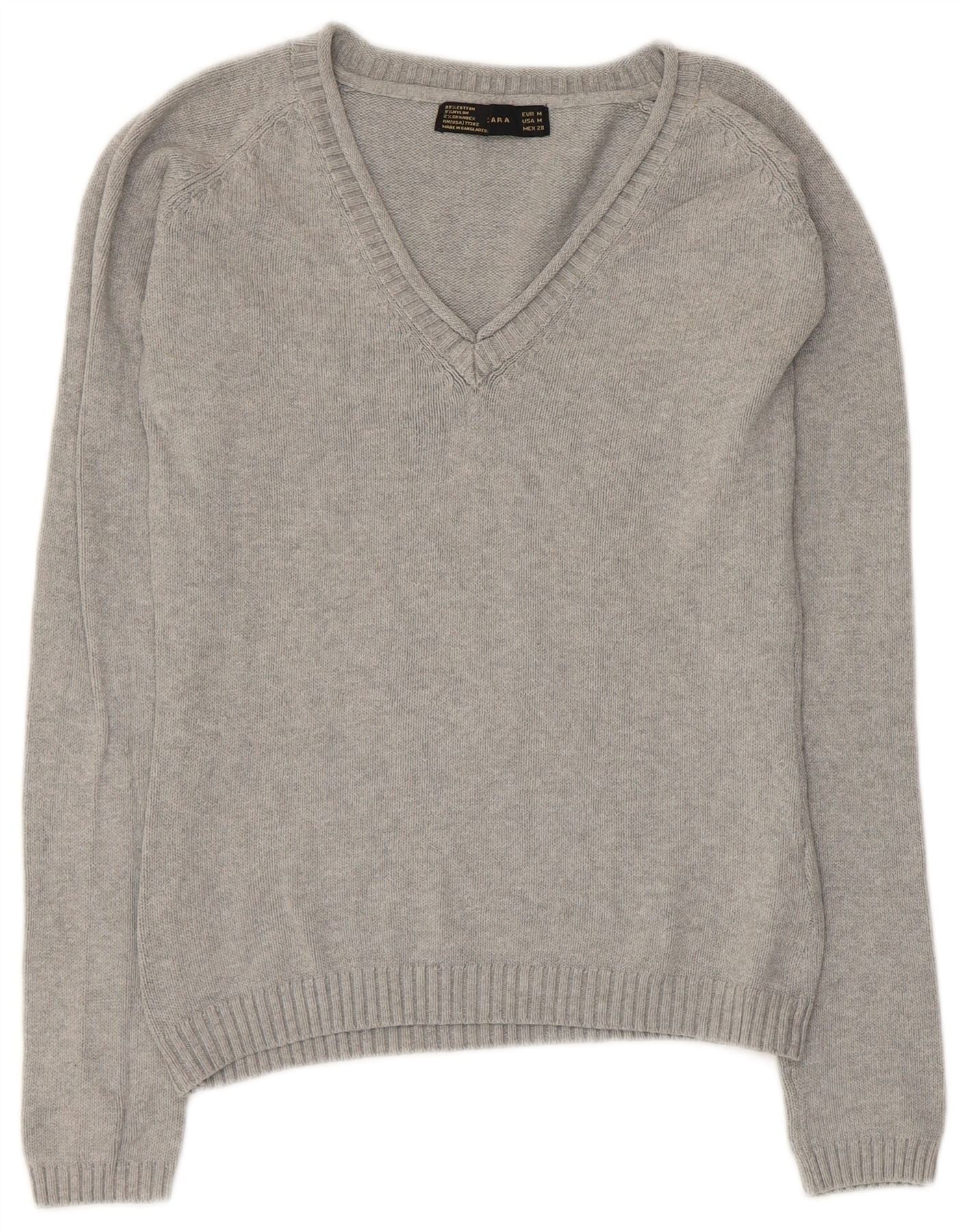 ZARA Dame V-hals sweater UK 12 Medium Grey Bomuld
