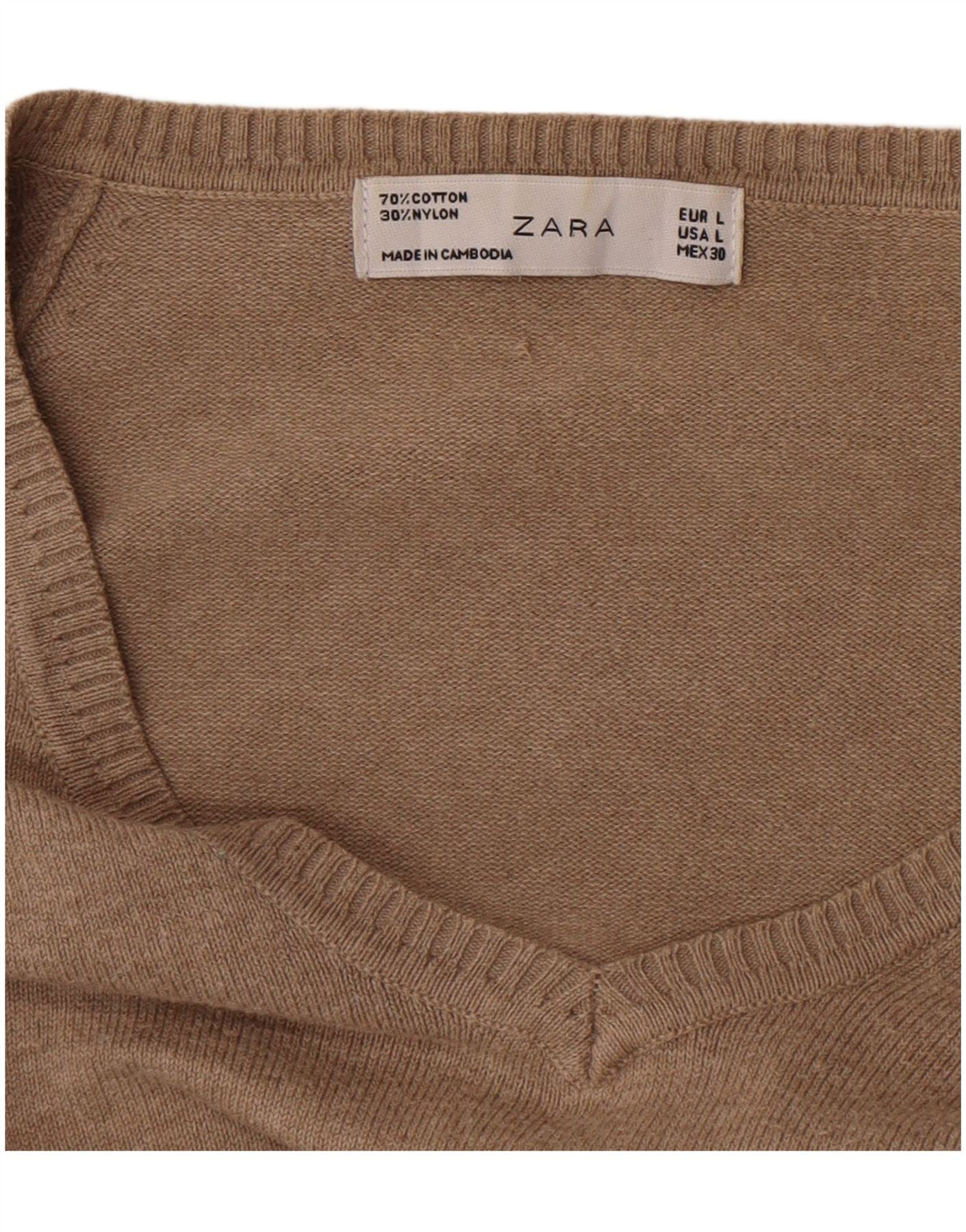 Zara Dame V-hals sweater UK 14 Stor brun bomuld