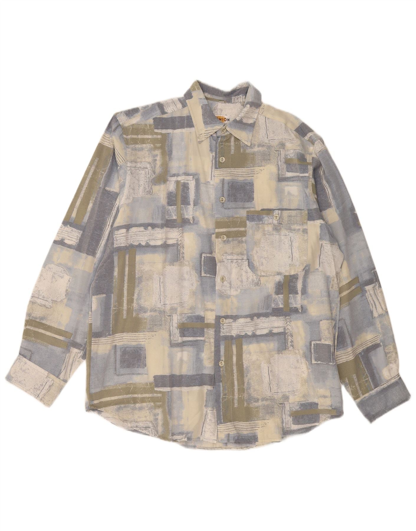 VINTAGE Womens Shirt Blouse UK 13/14 Medium Yellow Geometric Polyester Vintage Vintage and Second-Hand Vintage from Messina Hembry