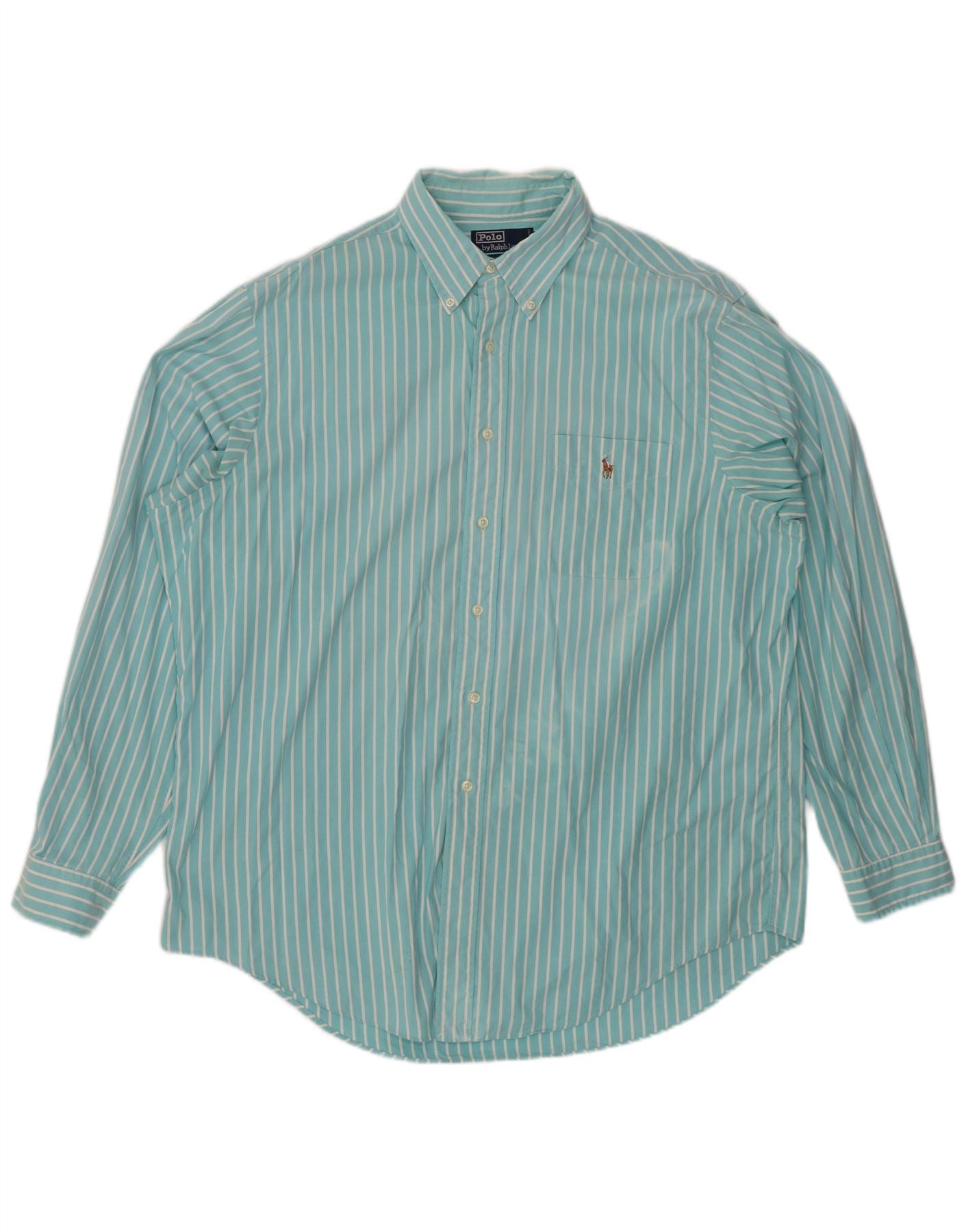 TED BAKER Mens Shirt Size 16.5 XL Navy Blue Striped Cotton Vintage Ted Baker and Second-Hand Ted Baker from Messina Hembry