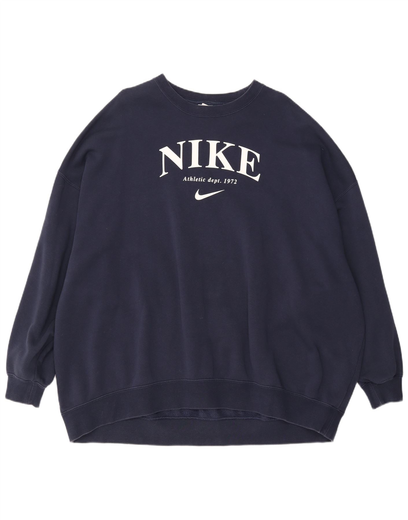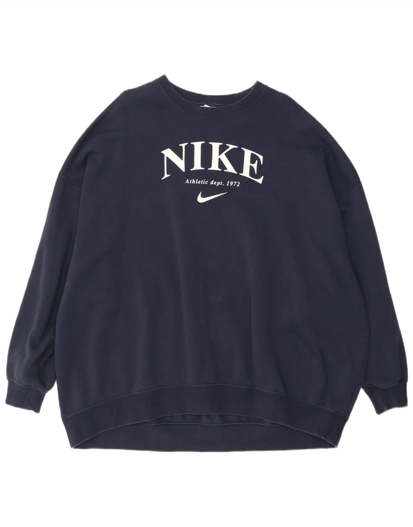 NIKE Womens Oversized Crop Sweatshirt Jumper UK 14 Medium Grey Cotton Vintage Nike and Second-Hand Nike from Messina Hembry